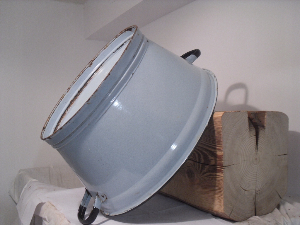 Ласкаво просимо на мій аукціон. На аукціонах я зазвичай пропоную вам речі часів Польської Народної Республіки. На цьому аукціоні я пропоную ОРИГІНАЛЬНУ стару емальовану миску, ванну, ванну дуже гарного блакитного / світло-блакитного кольору зовні та всередині з чорними обідками та чорними ручками/ручками. Ободок навколо нього в кількох місцях незначно пошкоджений.Всередині та зовні є звичайні сліди використання у вигляді подряпин, потертостей та подекуди іржавих нальотів. Всередині є більше пошкоджень на дні, також видно на дні чаші та зовні, хоча чаша щільна, я думаю, пошкодження було спричинено ударом або падінням чогось важкого всередині. Ванна має підпис. Все прибрали, але я нічого не закріпив. /дивіться фото/