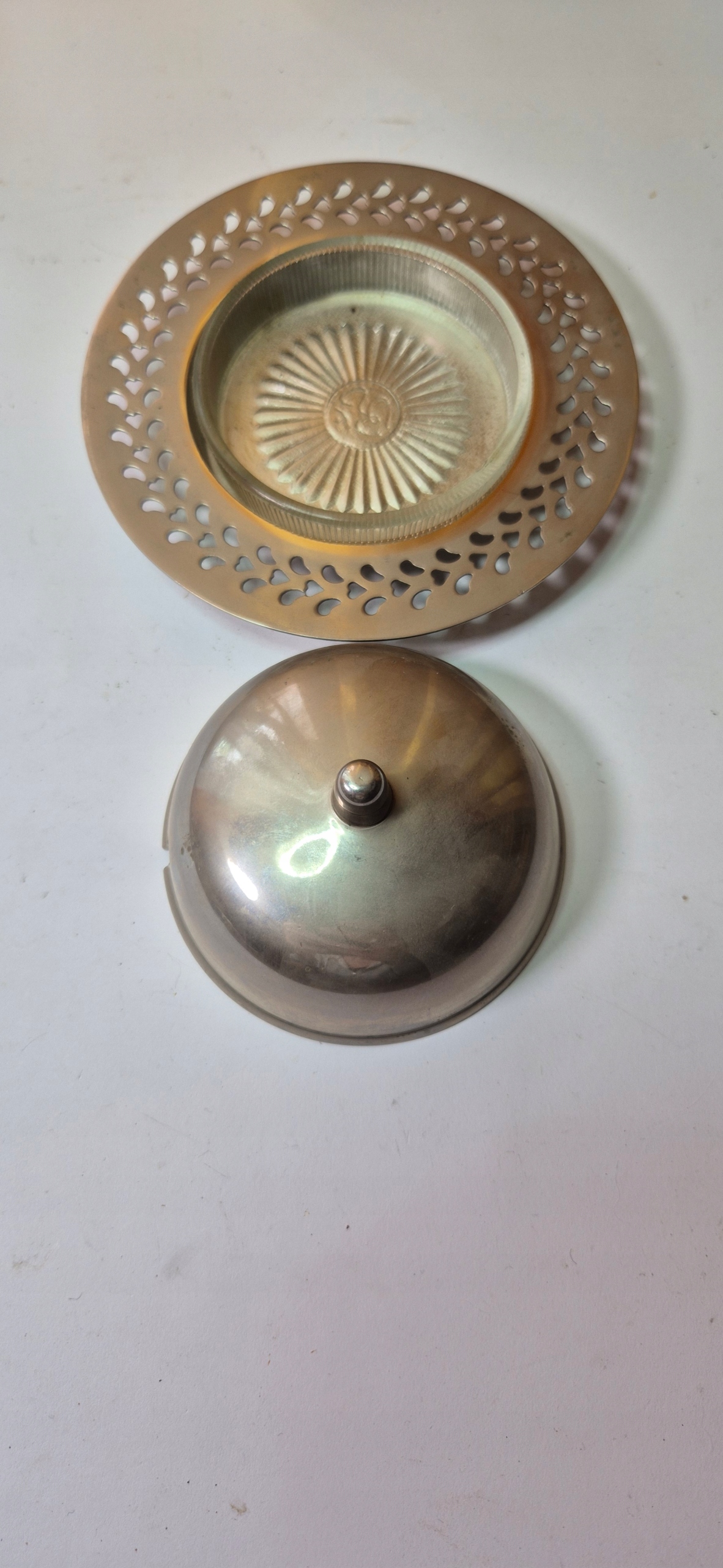 Всередині красива скляна вставка діаметром 7,5 см.