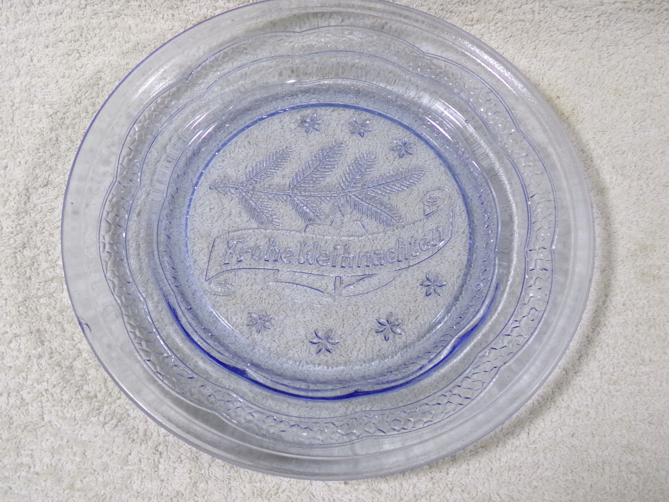 Красива скляна тарілка, висота 2,7 см, діаметр ЦЕНТР 23,5 см, вага 0,66 кг. Хороший стан, невеликий скол, дивіться останню фотографію.