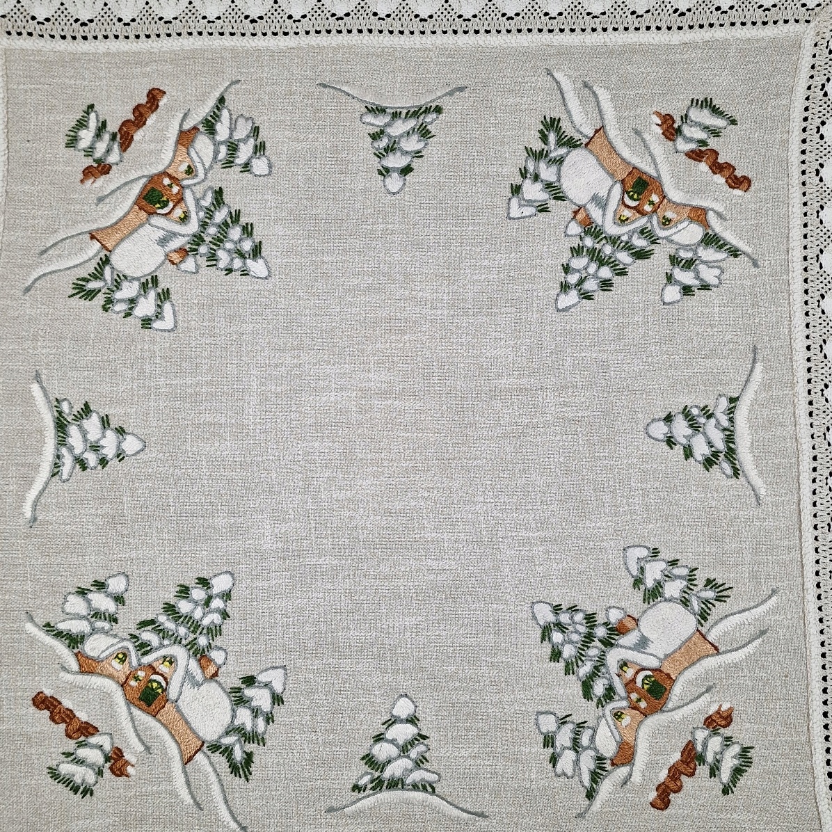 ГАРНА/РІЗДВЯНА СКАТЕРТИНА З РУЧНОЮ ВИШИВКОЮ ТА МЕРЕЖИВОМ