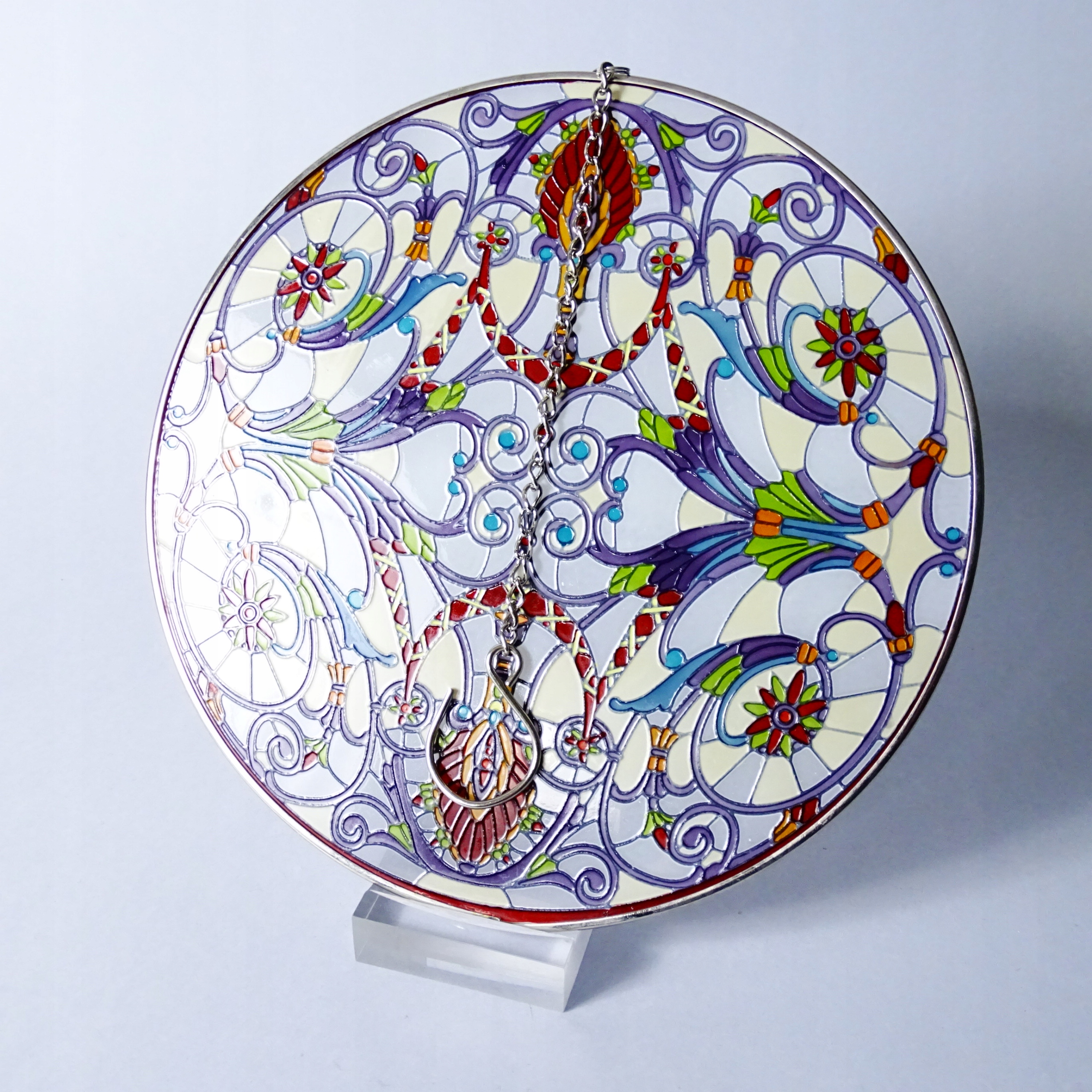 Дуже гарна прикраса з кольоровим орнаментом, нанесеним на скло.
