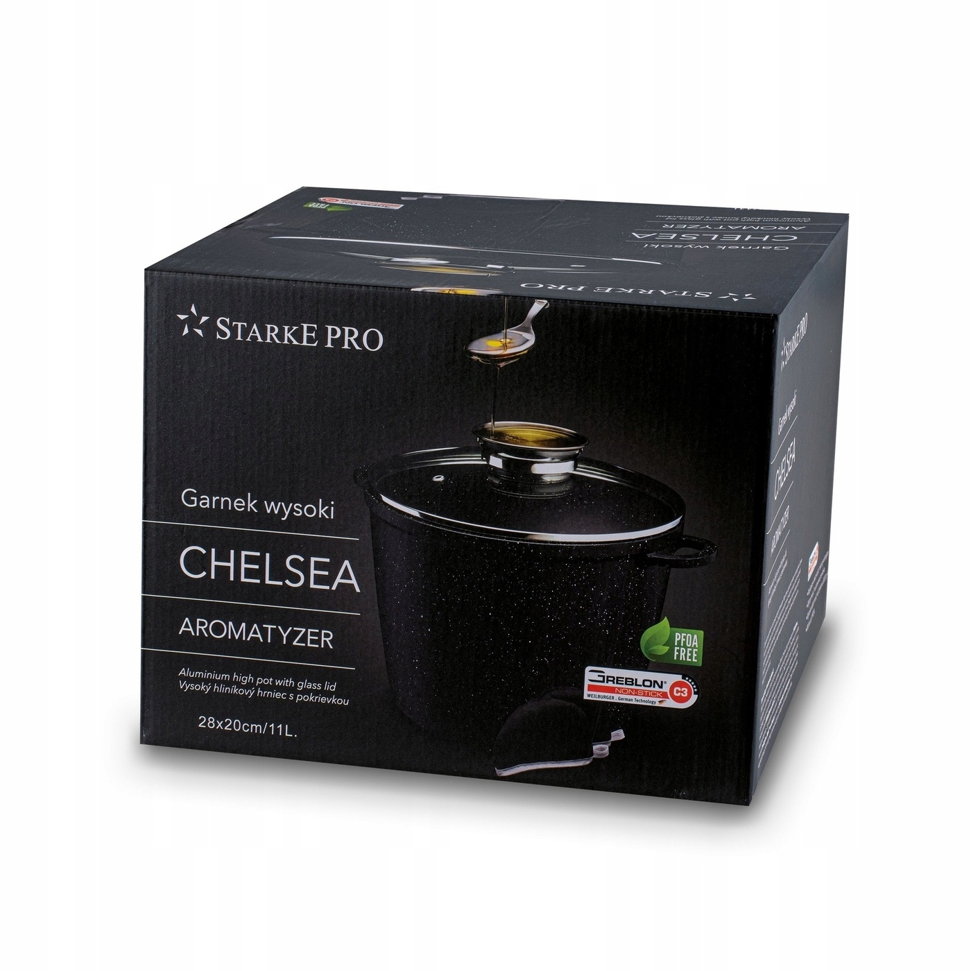 GARNEK DUŻY Indukcja Marmurkowy aromatyzerem Starke Pro Chelsea 11L 28cm