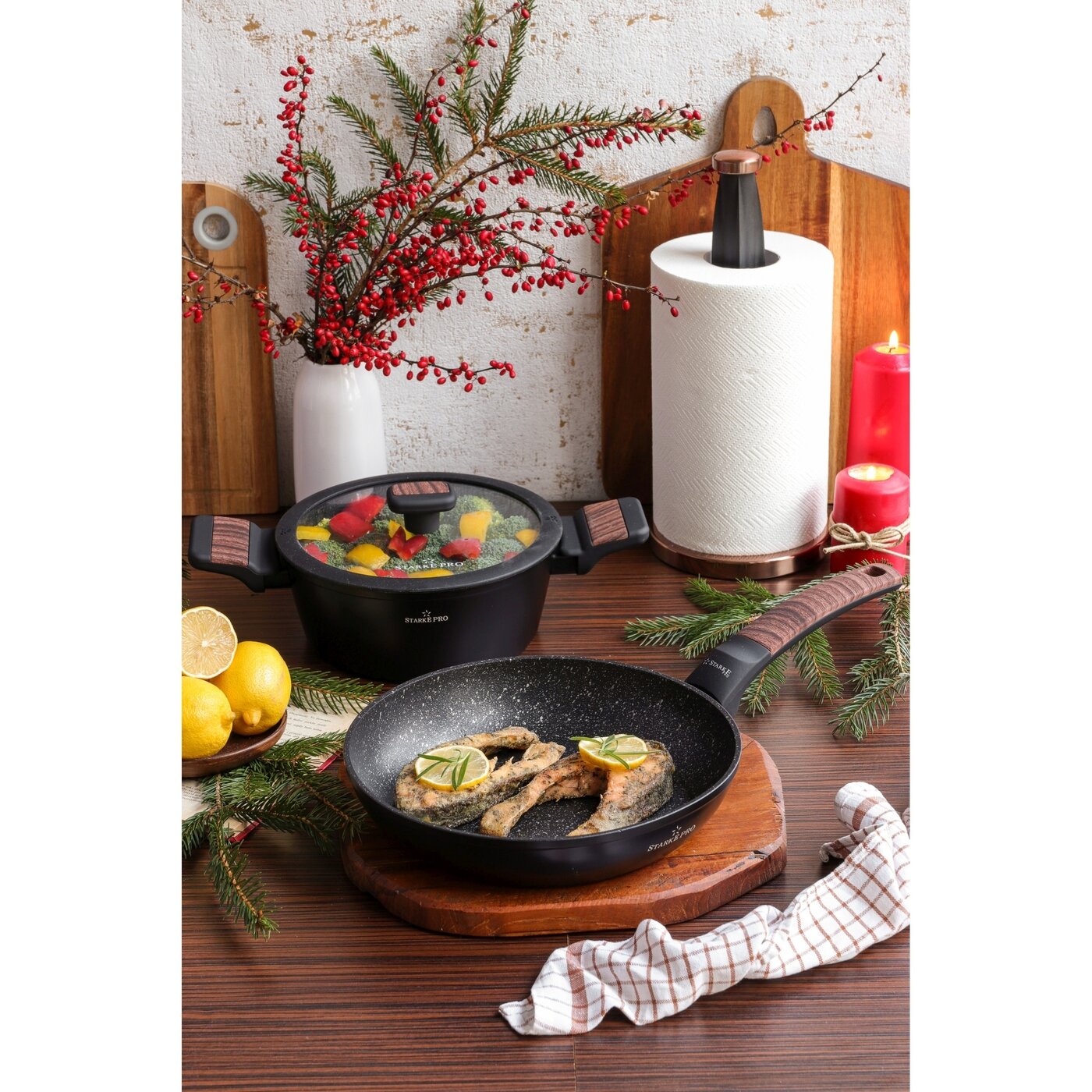 GARNEK Indukcja z POKRYWKĄ MARMURKOWY Starke Pro Archie Wooden 1,2 l 16cm