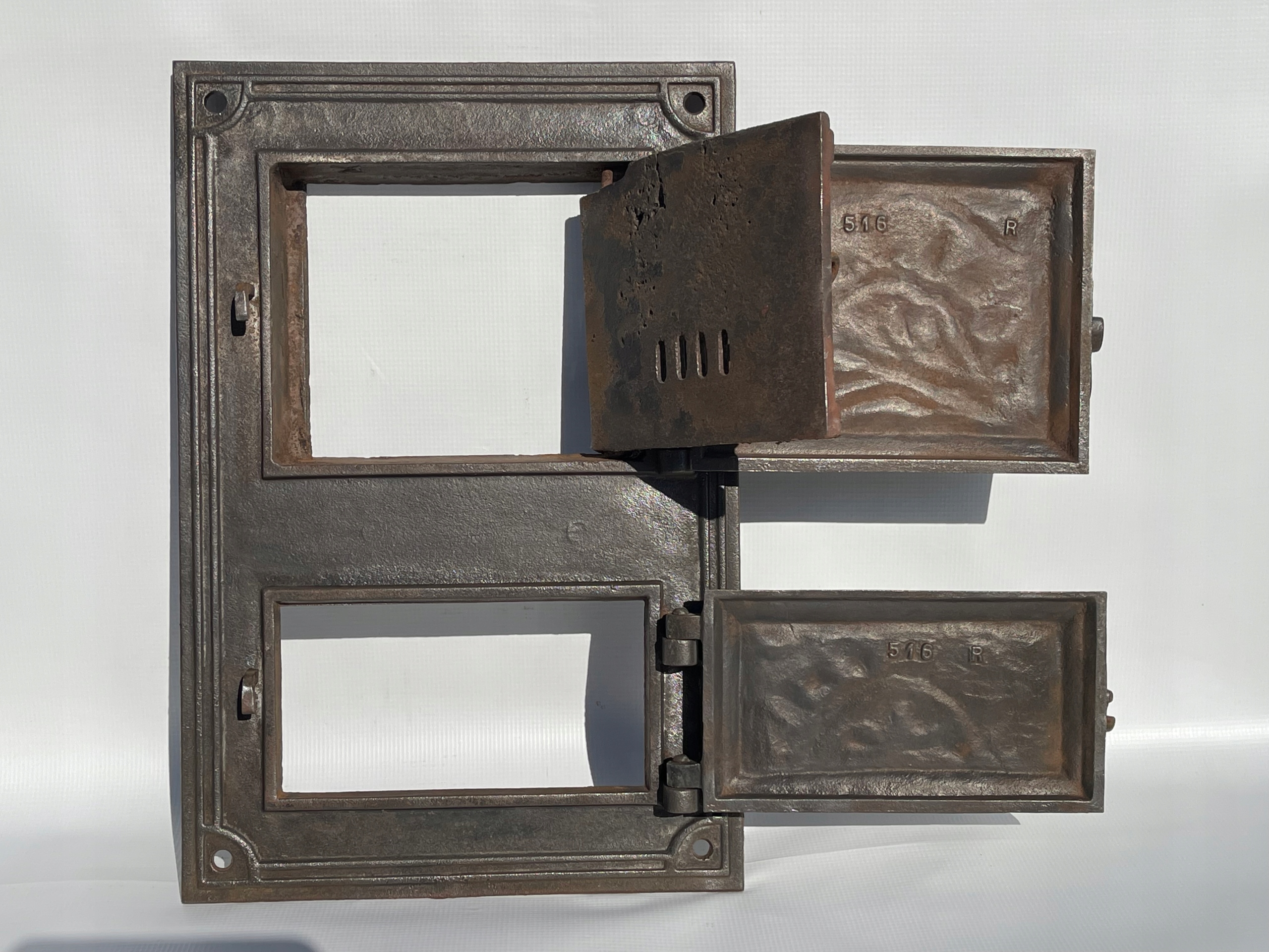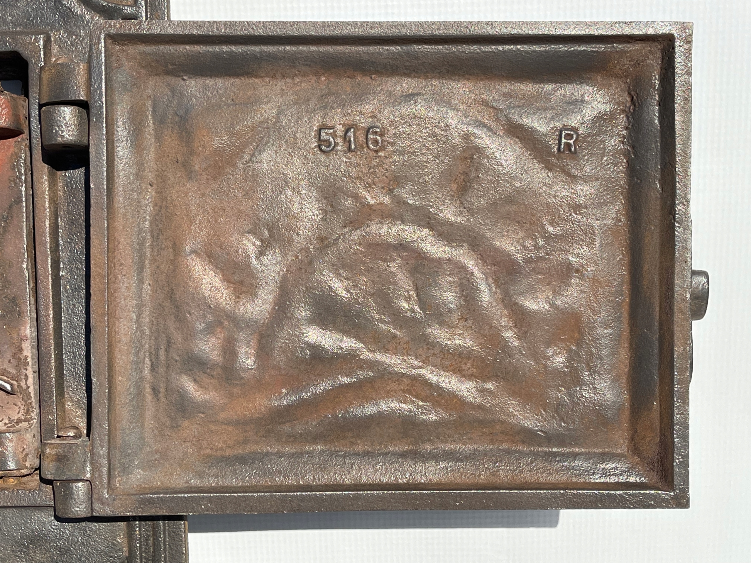 Предмет продажу старі чавунні пічні дверцята. Дуже гарний візерунок. На звороті видно ні. лиття - 516 R (фото № 6 і 7)