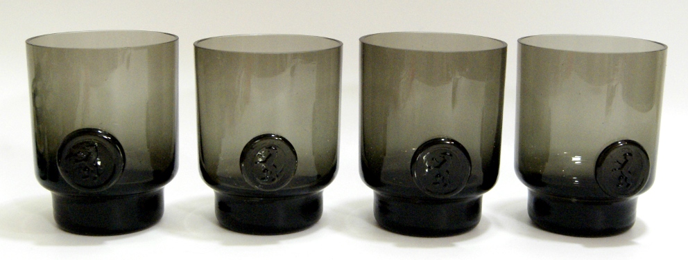 Красиві старовинні склянки - набір з 4 штук, виготовлені з масового тонованого скла