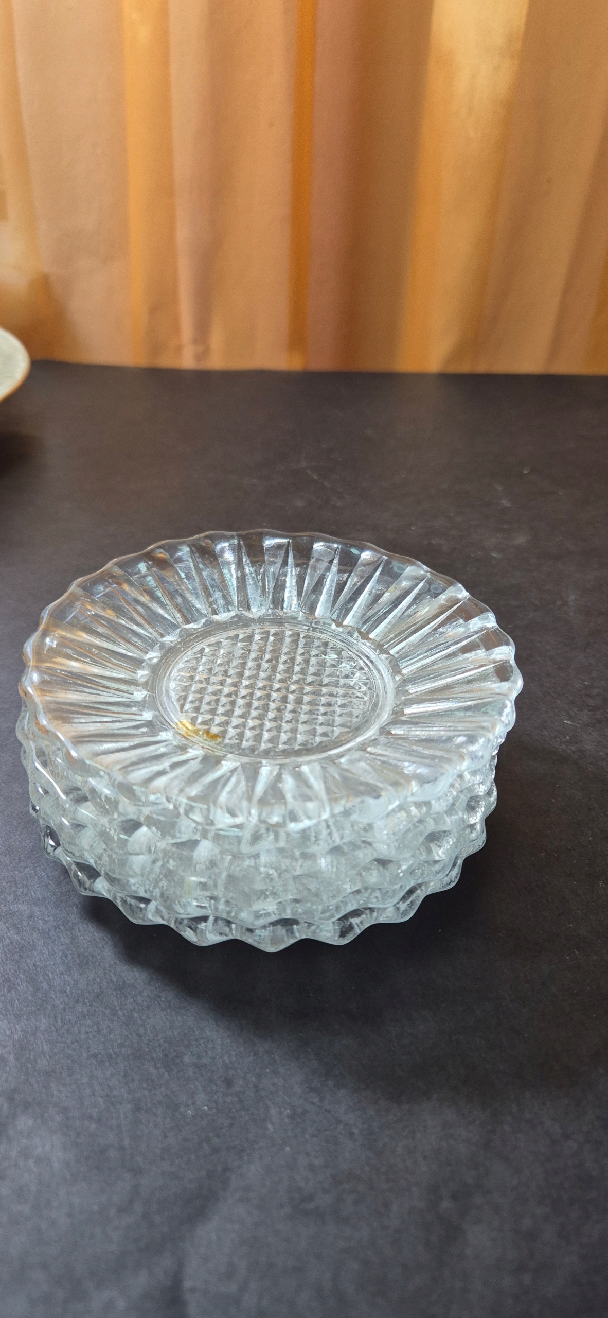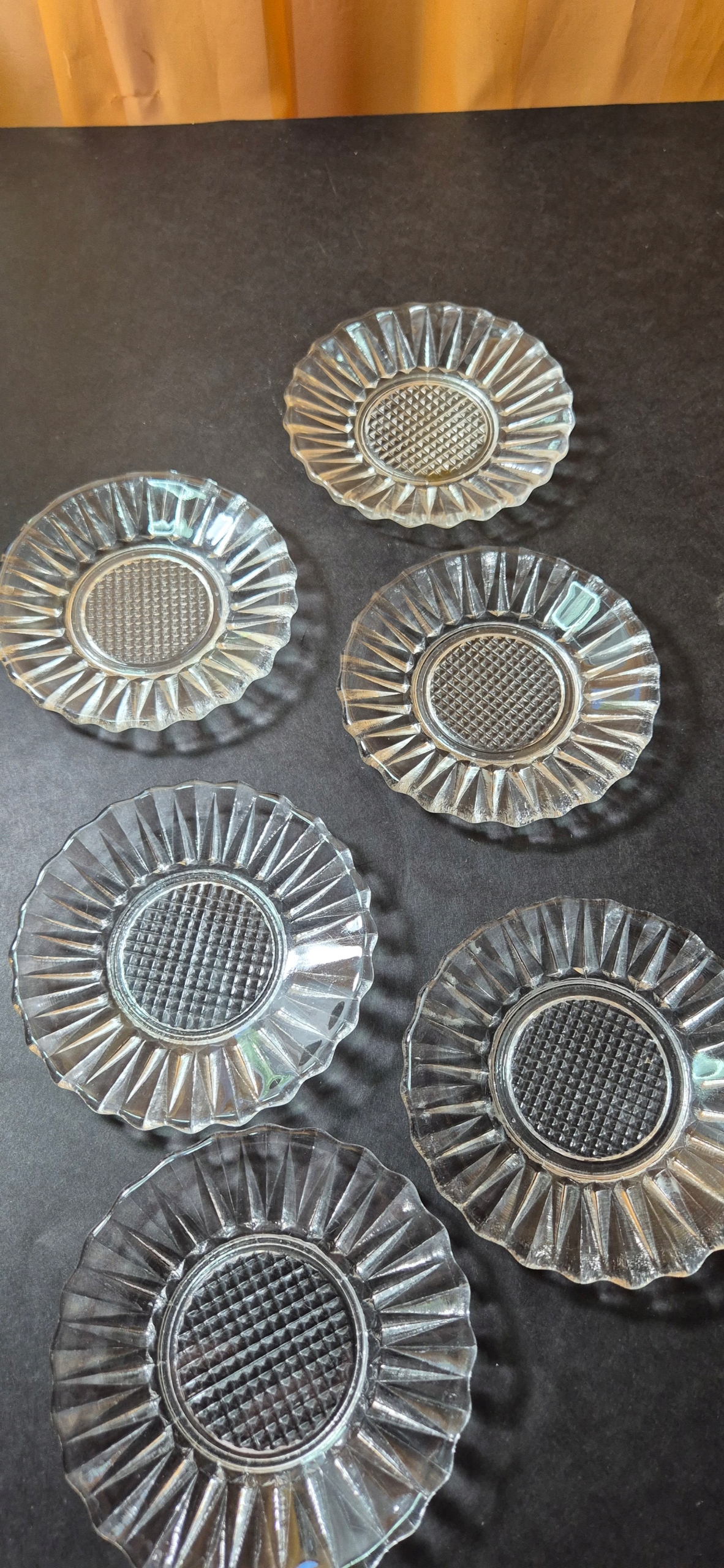 Гарні старовинні скляні десертні тарілки, набір на 6 персон, Т12
