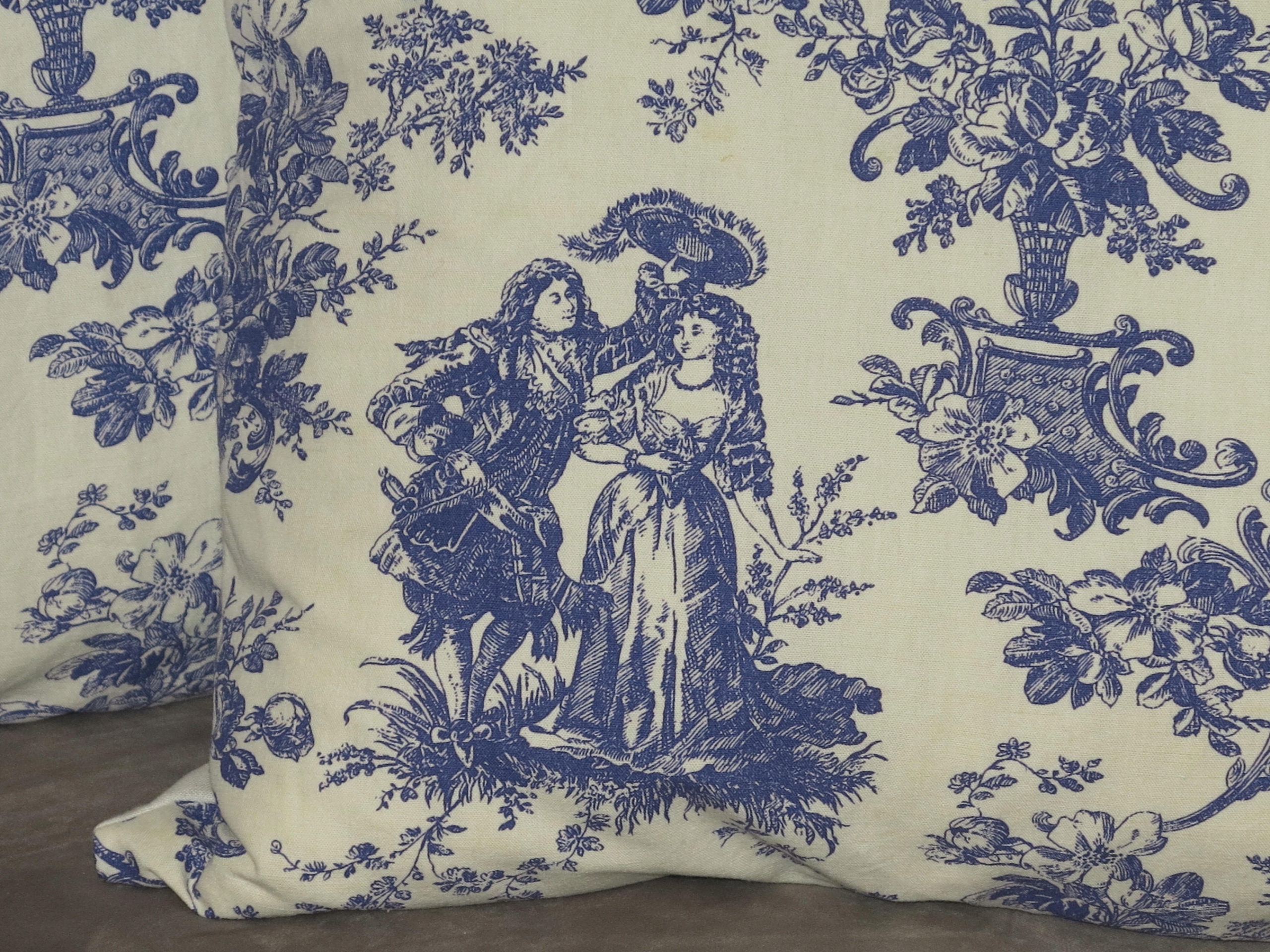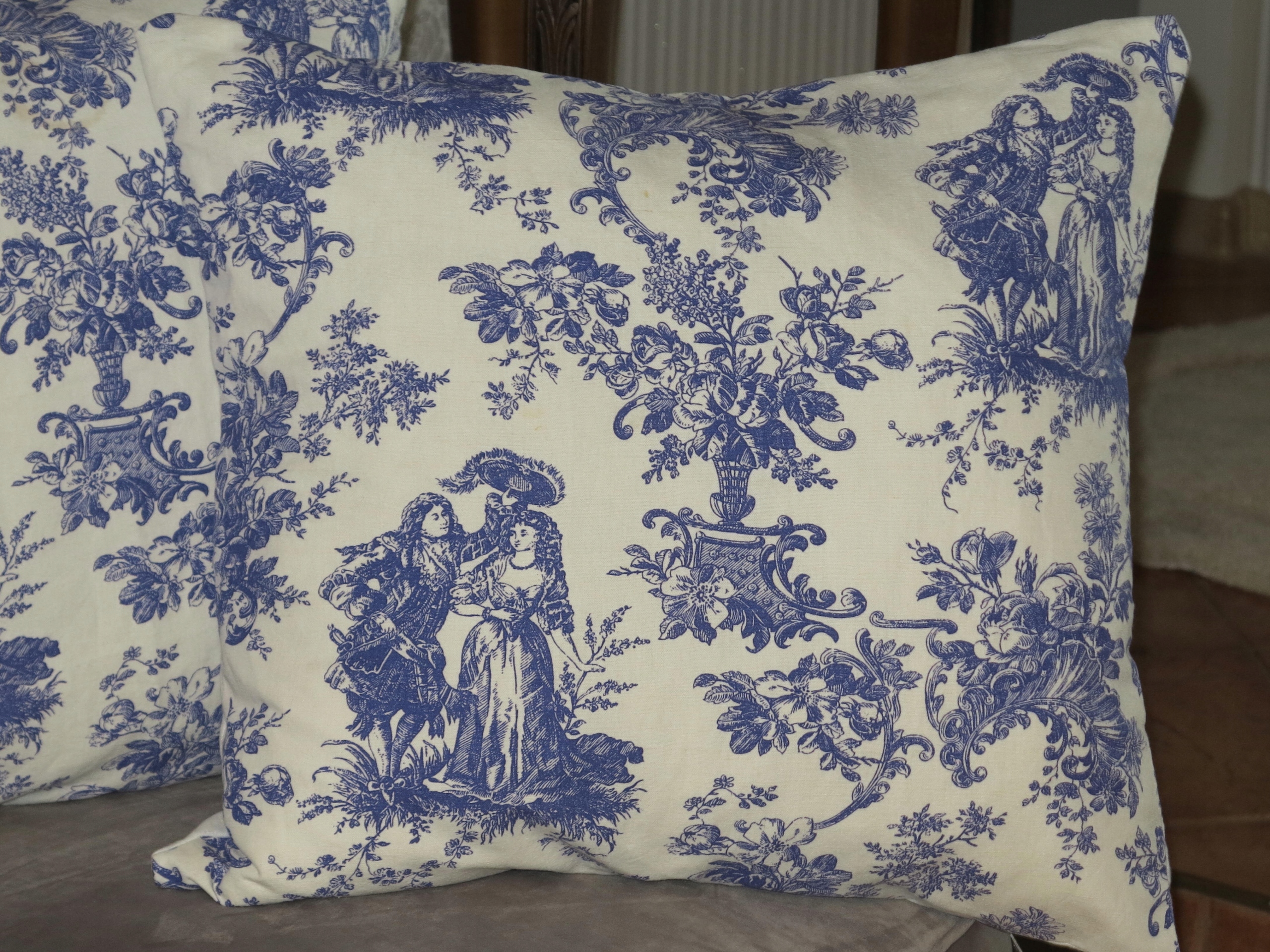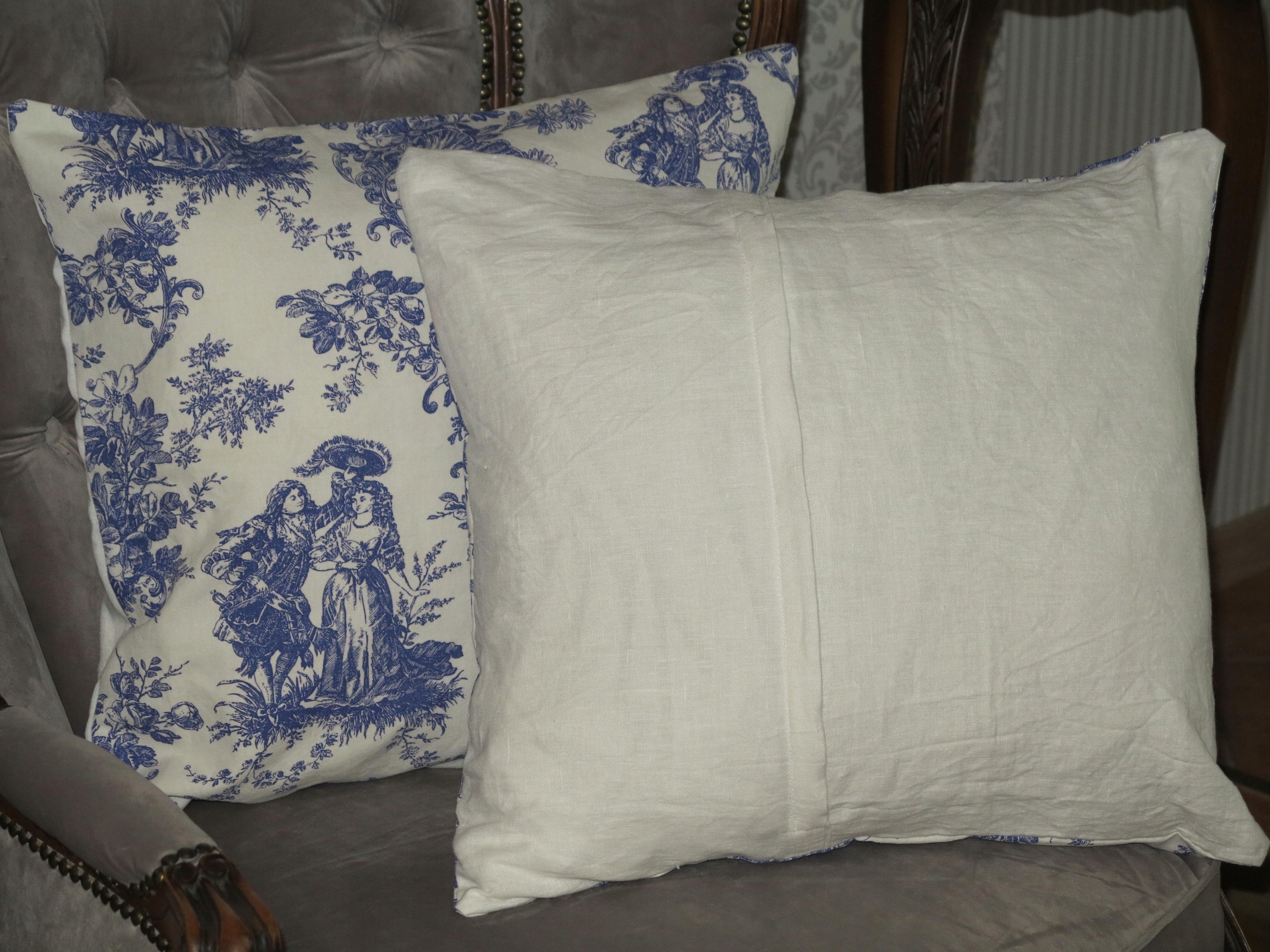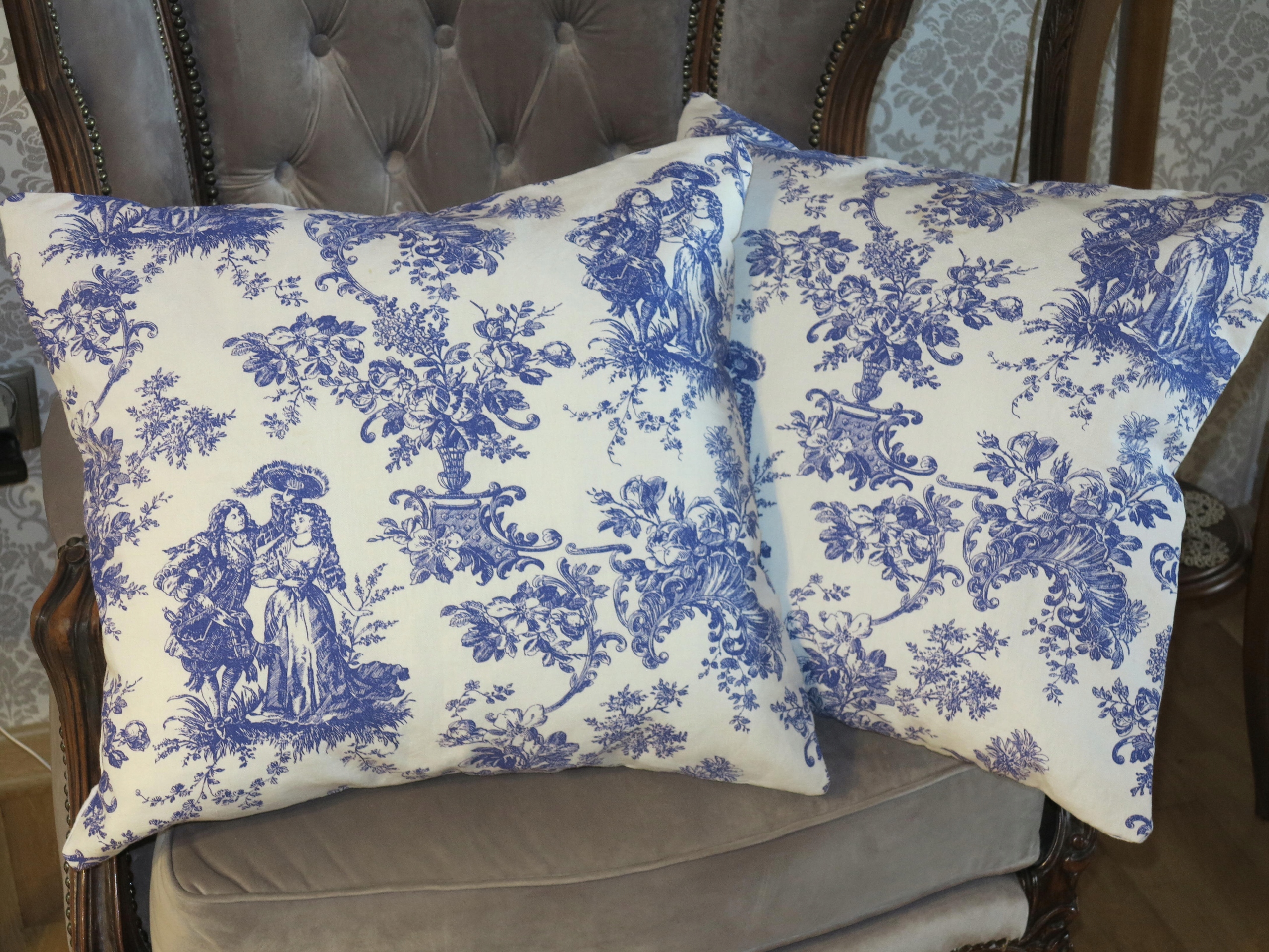 КОМПЛЕКТ ЧУДОВИХ ВЕЛИКИХ НАВОЛОЧОК З КОБАЛЬТОВИМИ СЦЕНАМИ. СПЕРЕД БАВОВНА, ЛЬОН ЗАД.