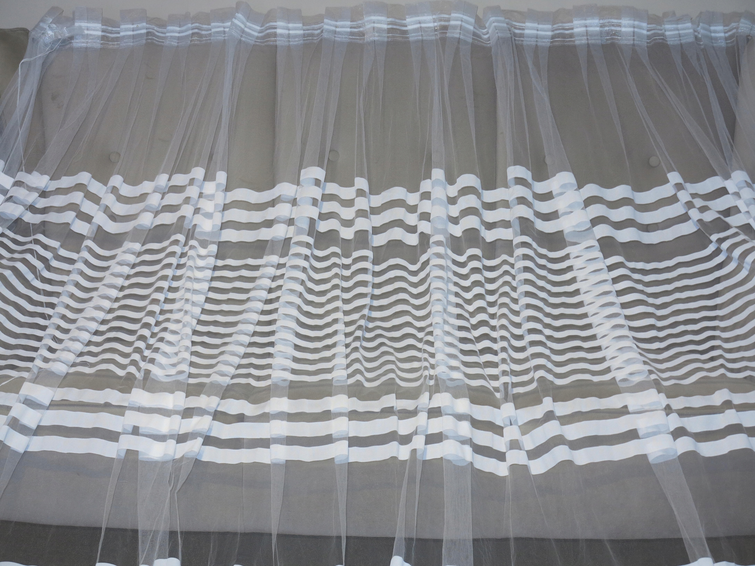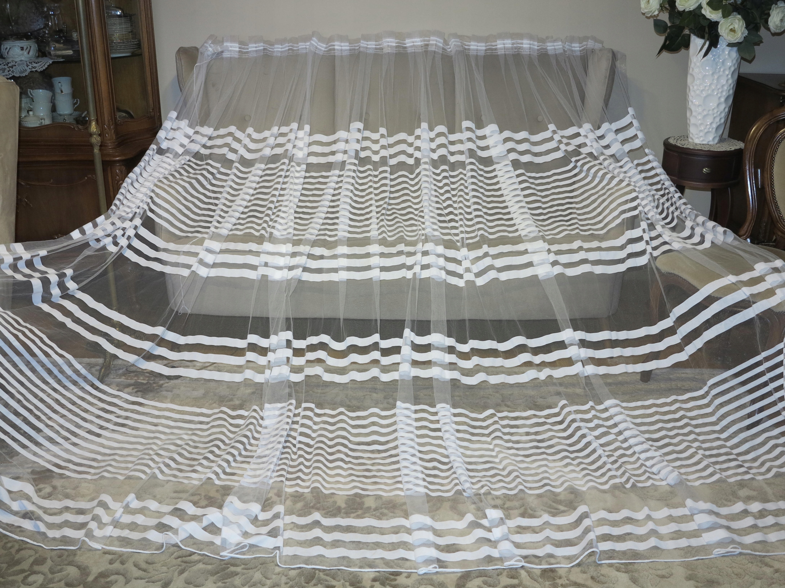 ЧУДОВУ БІЛОСНІЖНУ ШТОРУ, ЯК НІЖНИЙ ТЮЛЬ, З ДЕКОРАТИВНИМИ СМУЖКАМИ