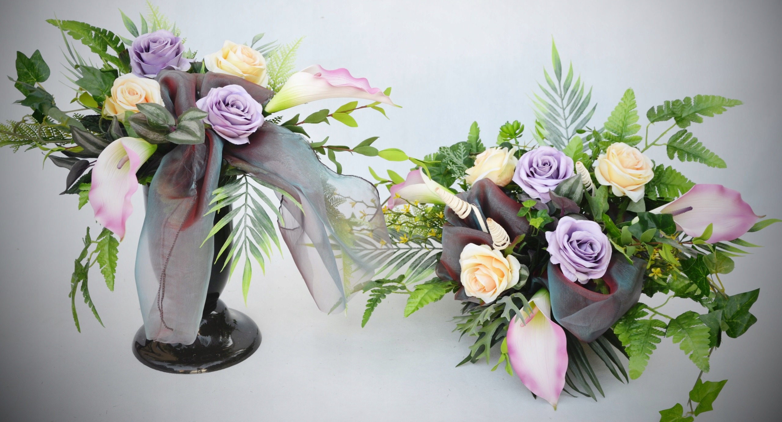 Великий, насичений, гарний букет і букет на могилу виготовлені з високоякісних штучних квіткових аксесуарів.