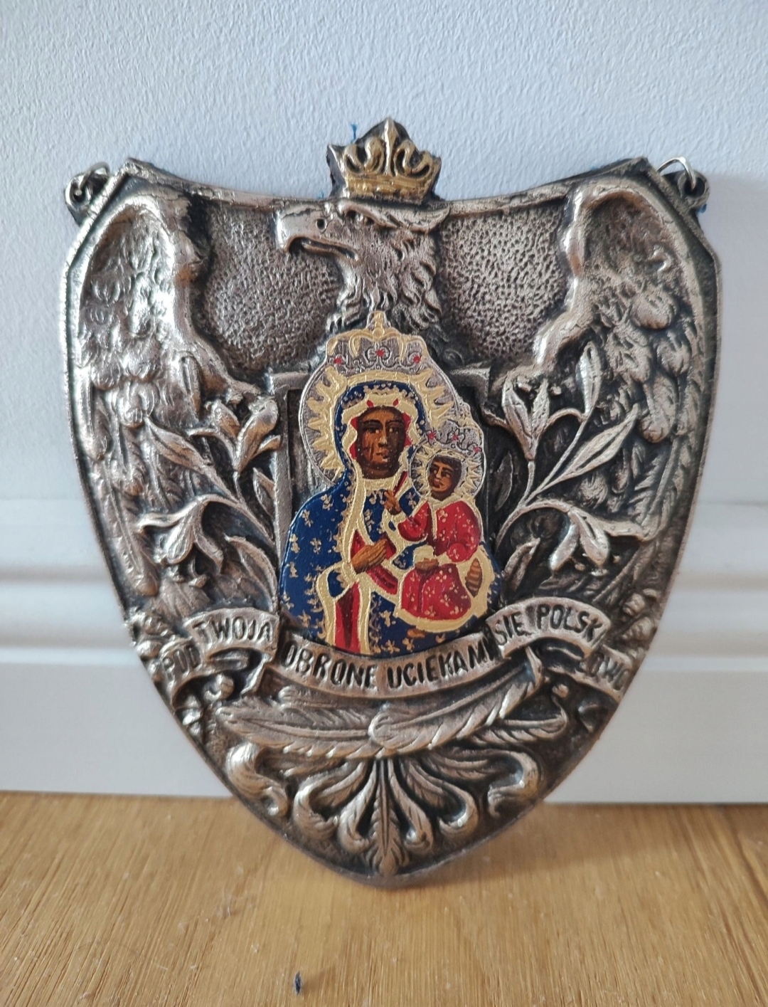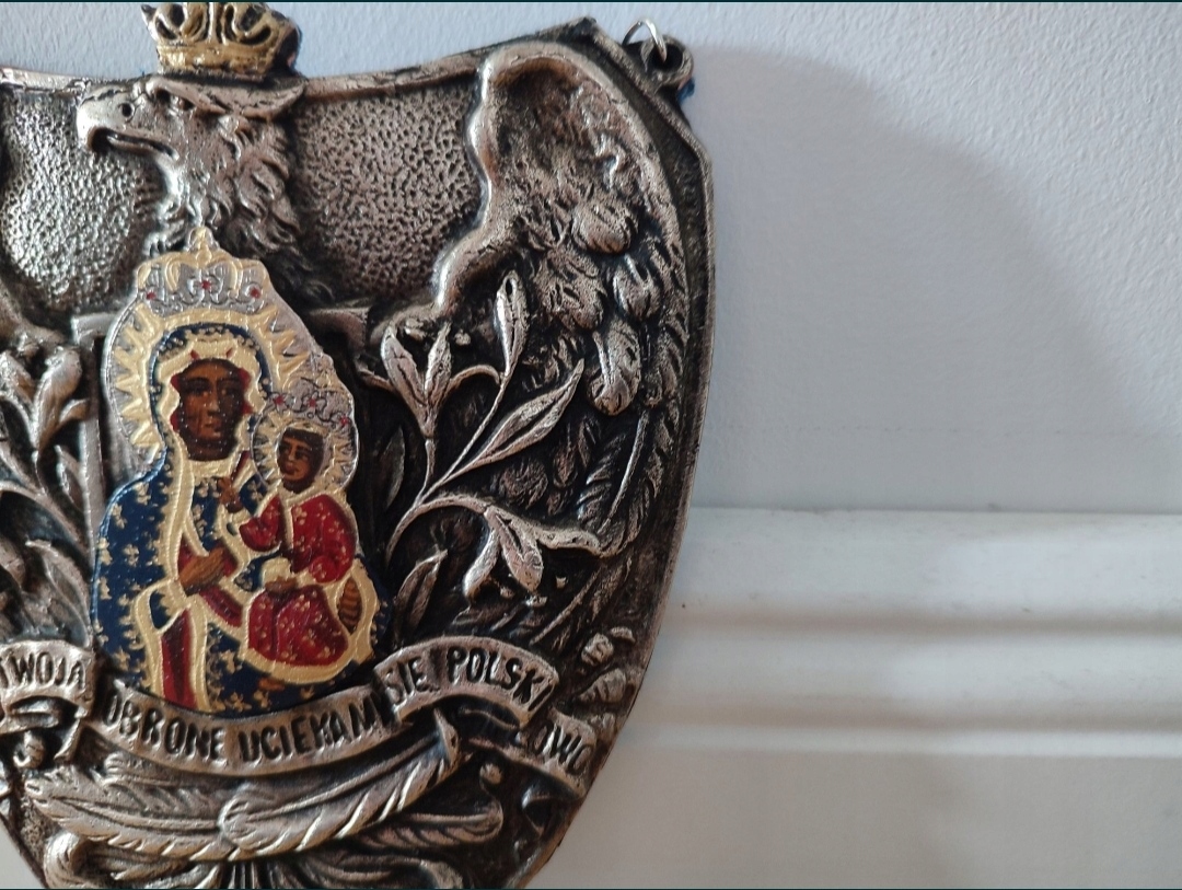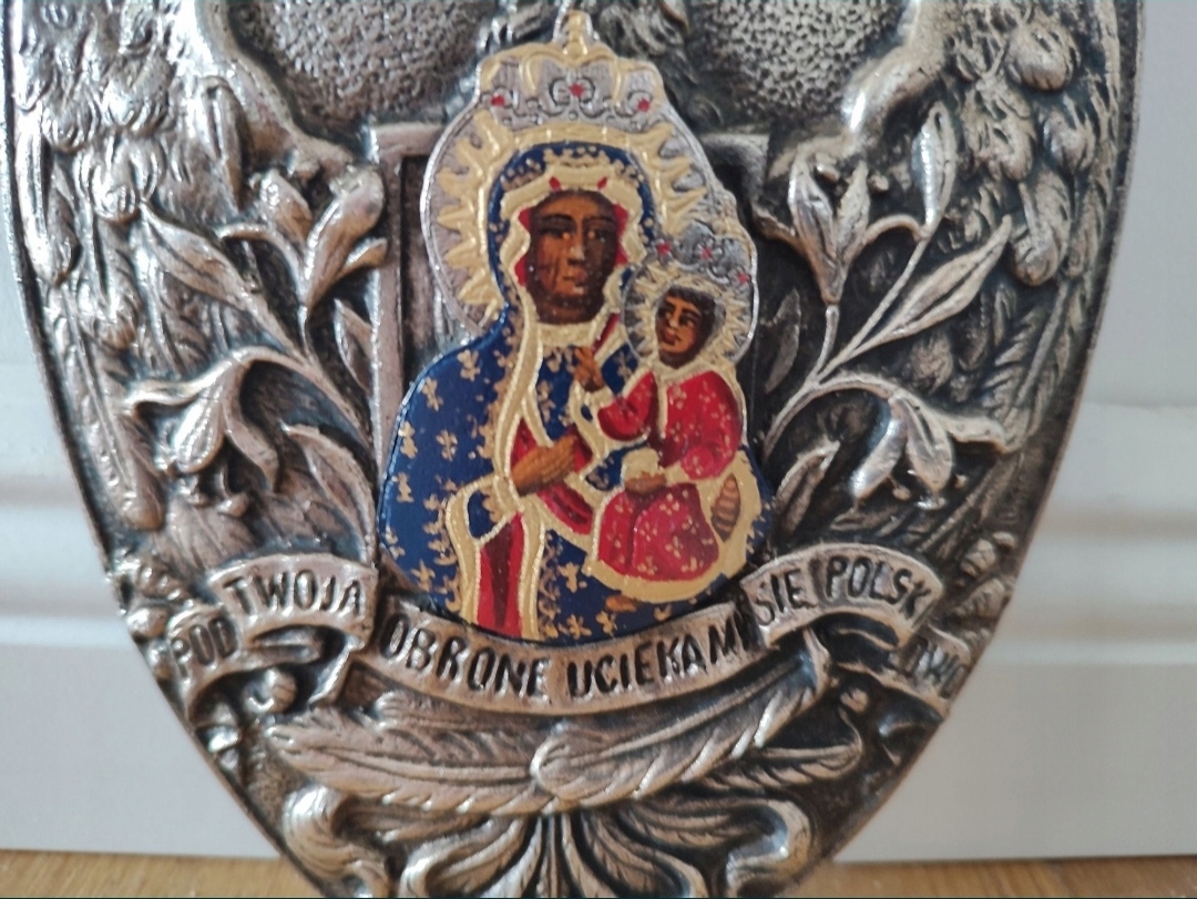 Всередині зображено Польського орла та Богоматір Королеву Польщі