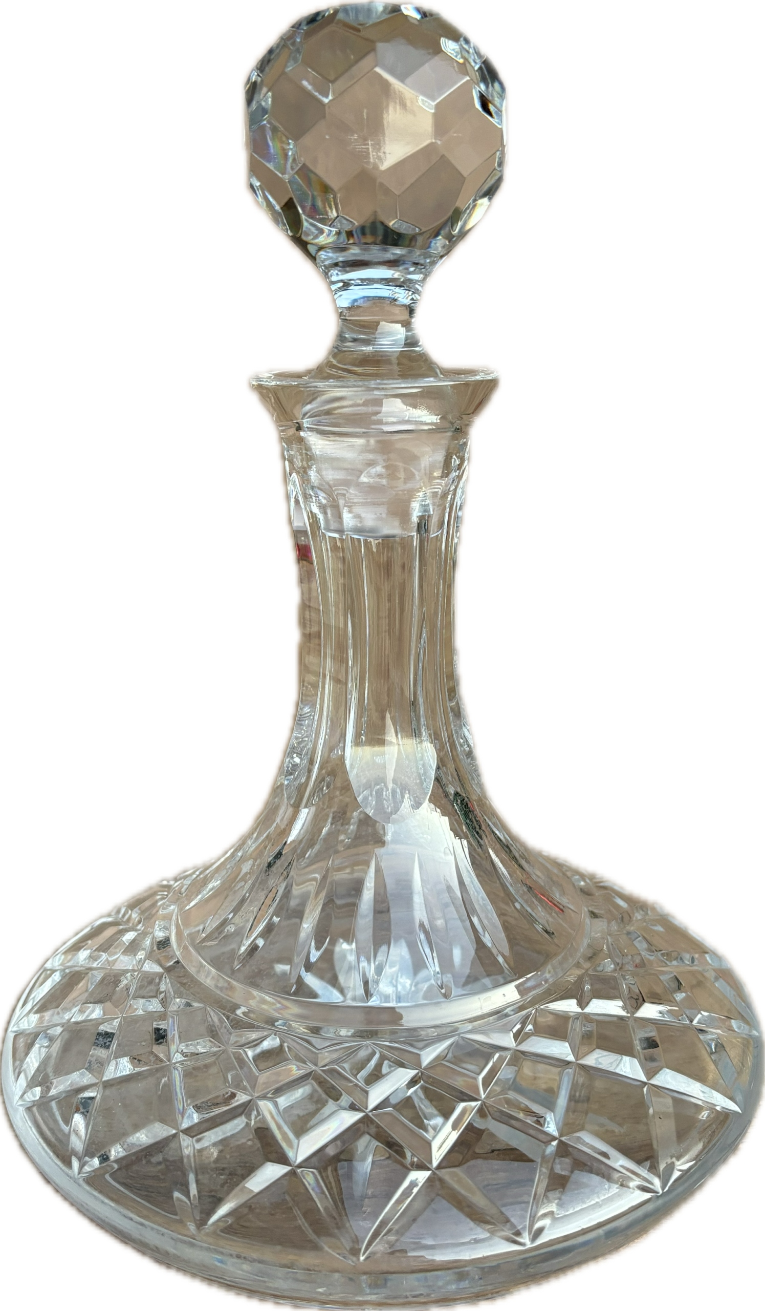 Красиво огранений кришталевий графин із широким круглим дном і дуже привабливою пробкою періоду Польської Народної Республіки. Розміри; висота 28 х основа 20 см х вихід 10 см. Стан товару видно на фото.