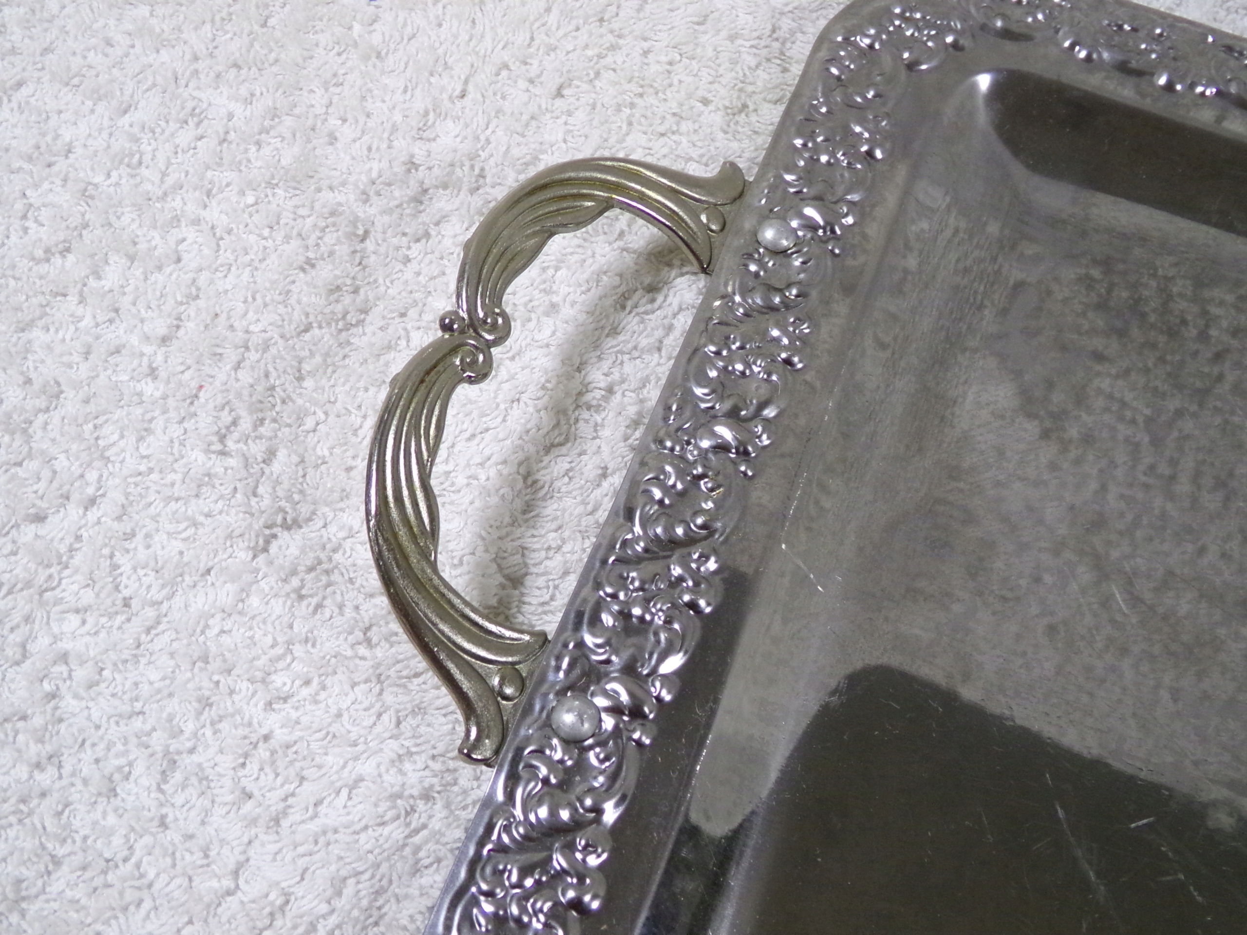 Красивий металевий хромований піднос розміром 43х25 см, вагою 0,36 кг. Хороший стан, без пошкоджень, невеликі сліди користування.