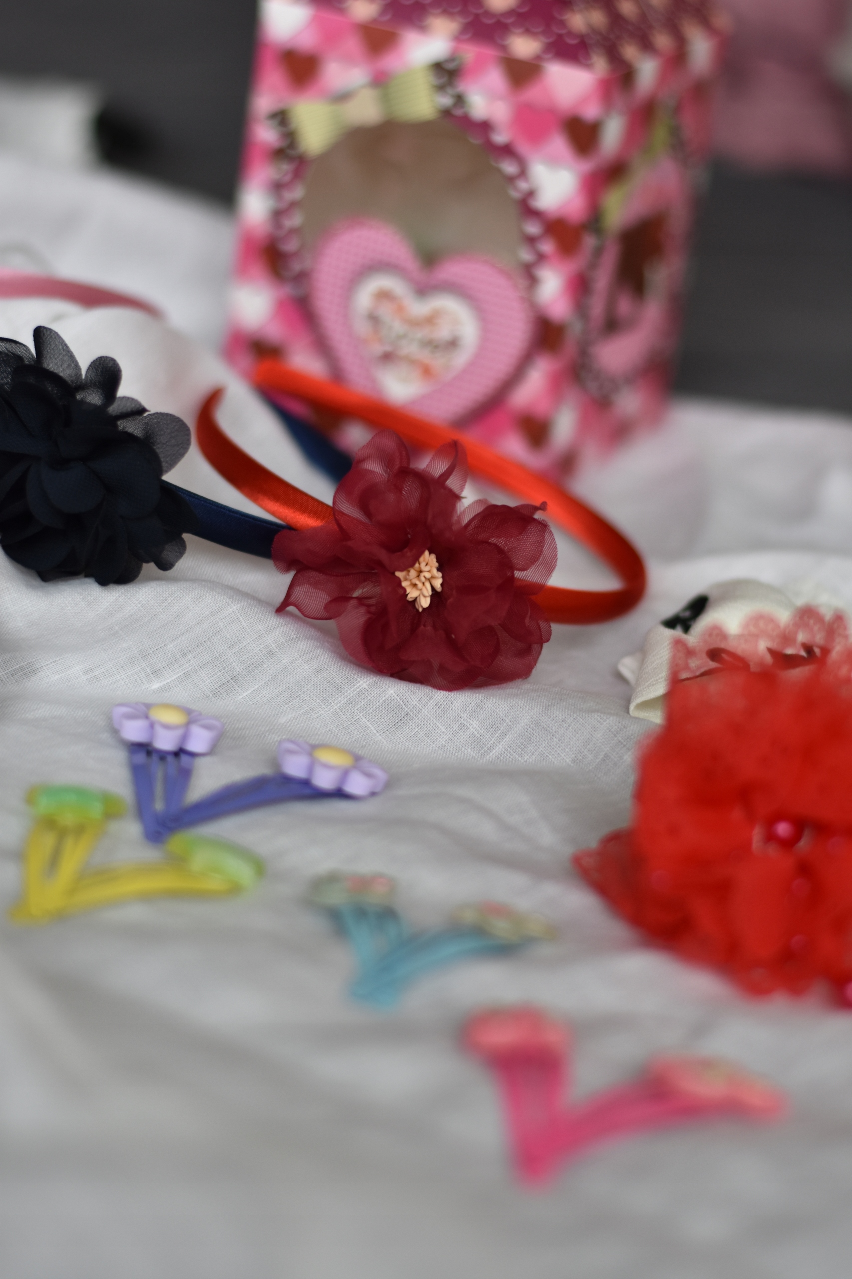 Гарний набір - резинки, запонки, пов'язки, бантик в коробці