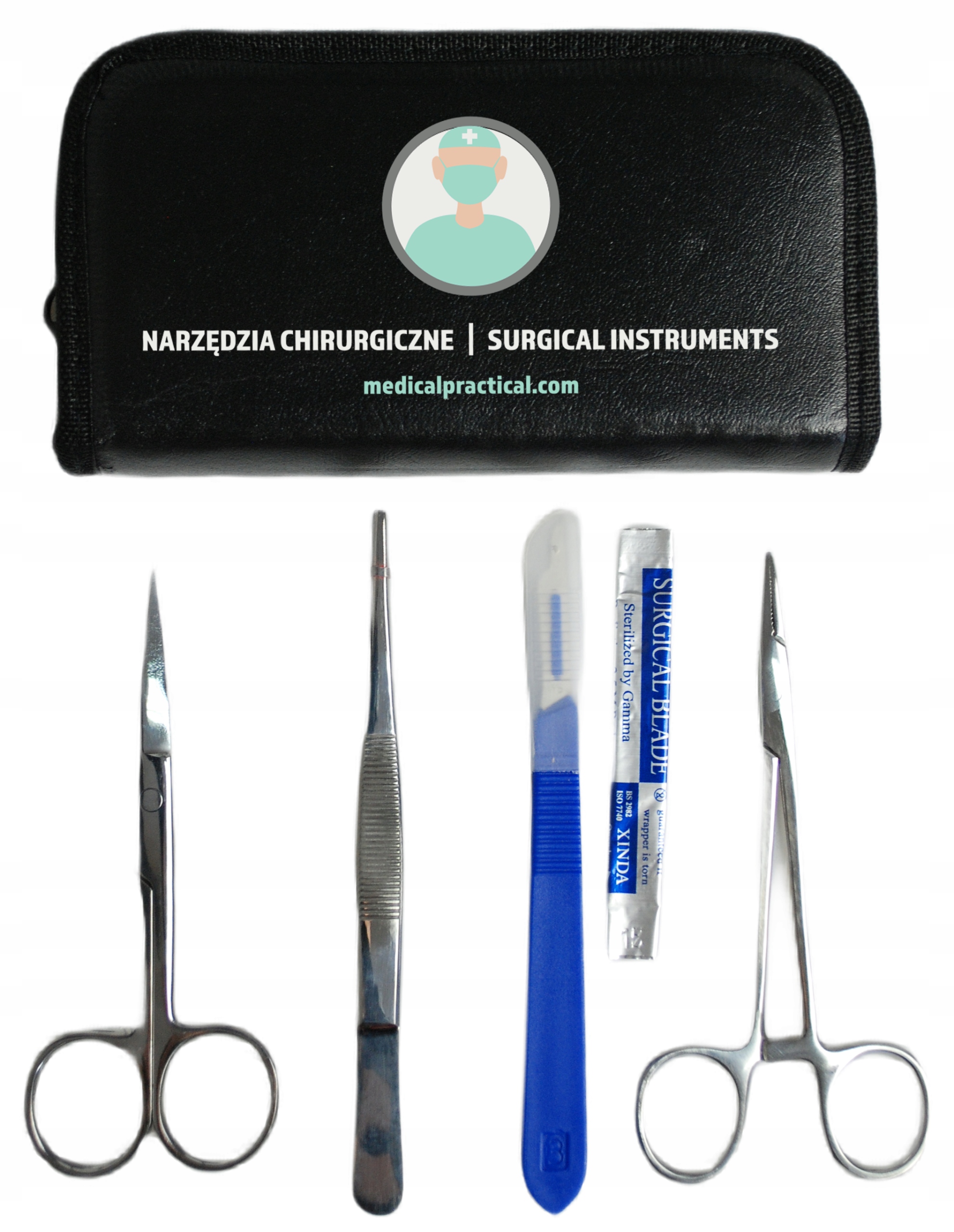 Хірургічні інструменти упаковані в зручний і практичний футляр. Їх завжди можна мати при собі, вони помістяться в будь-яку сумку. Чохол із відділеннями допомагає організувати роботу та запобігає втраті інструментів.