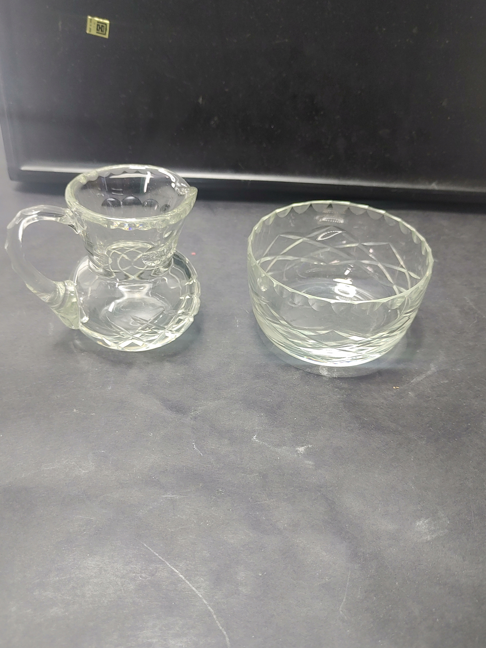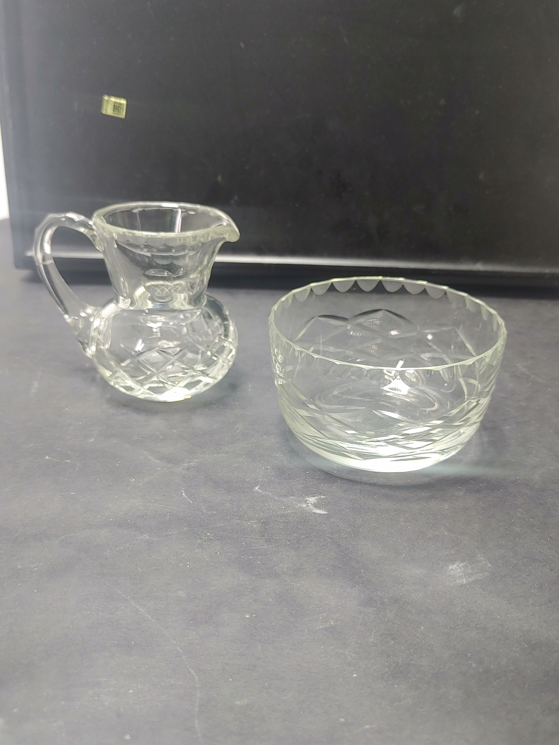 Чудовий скляний набір: вінтажний глечик і миска