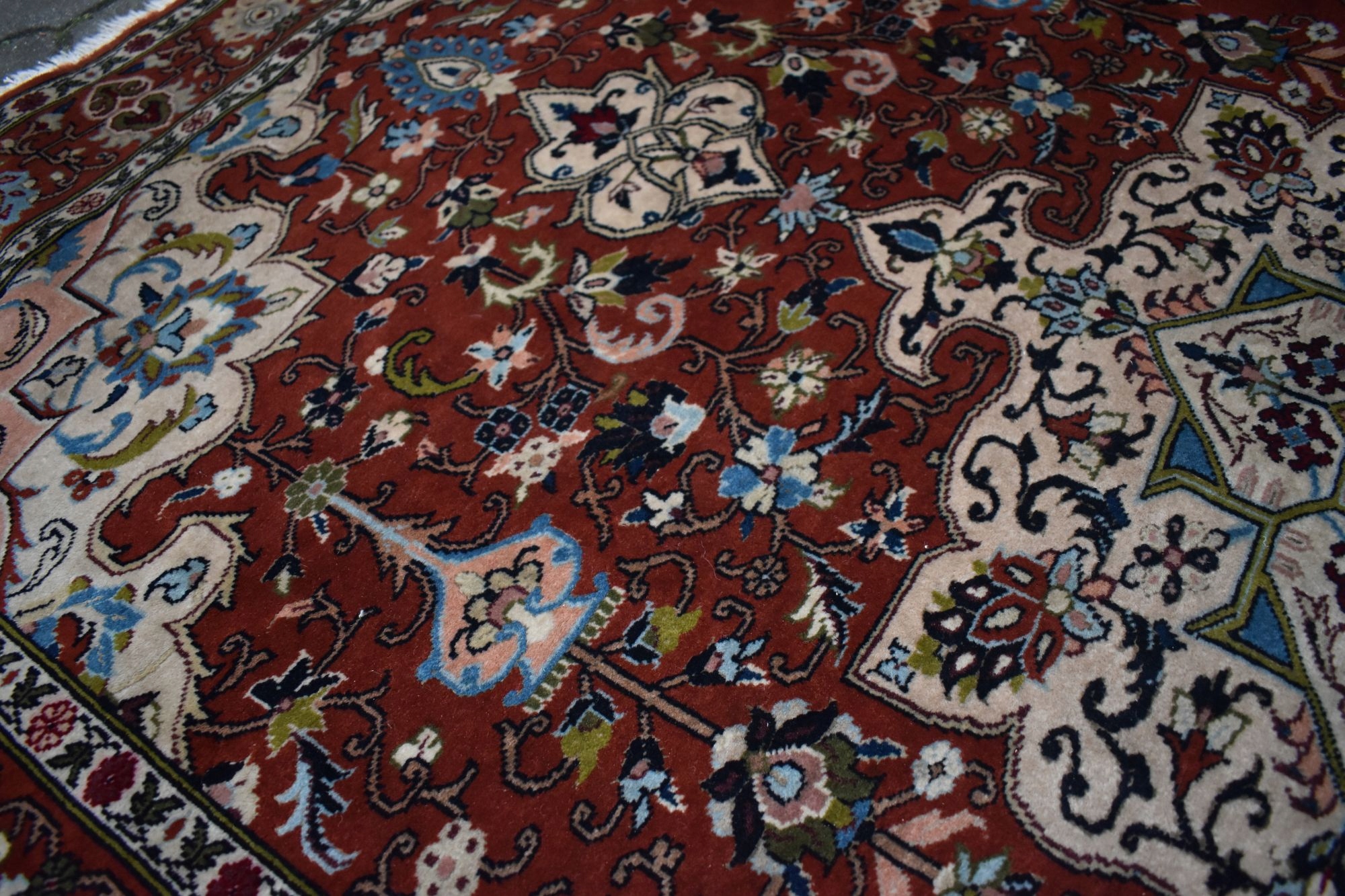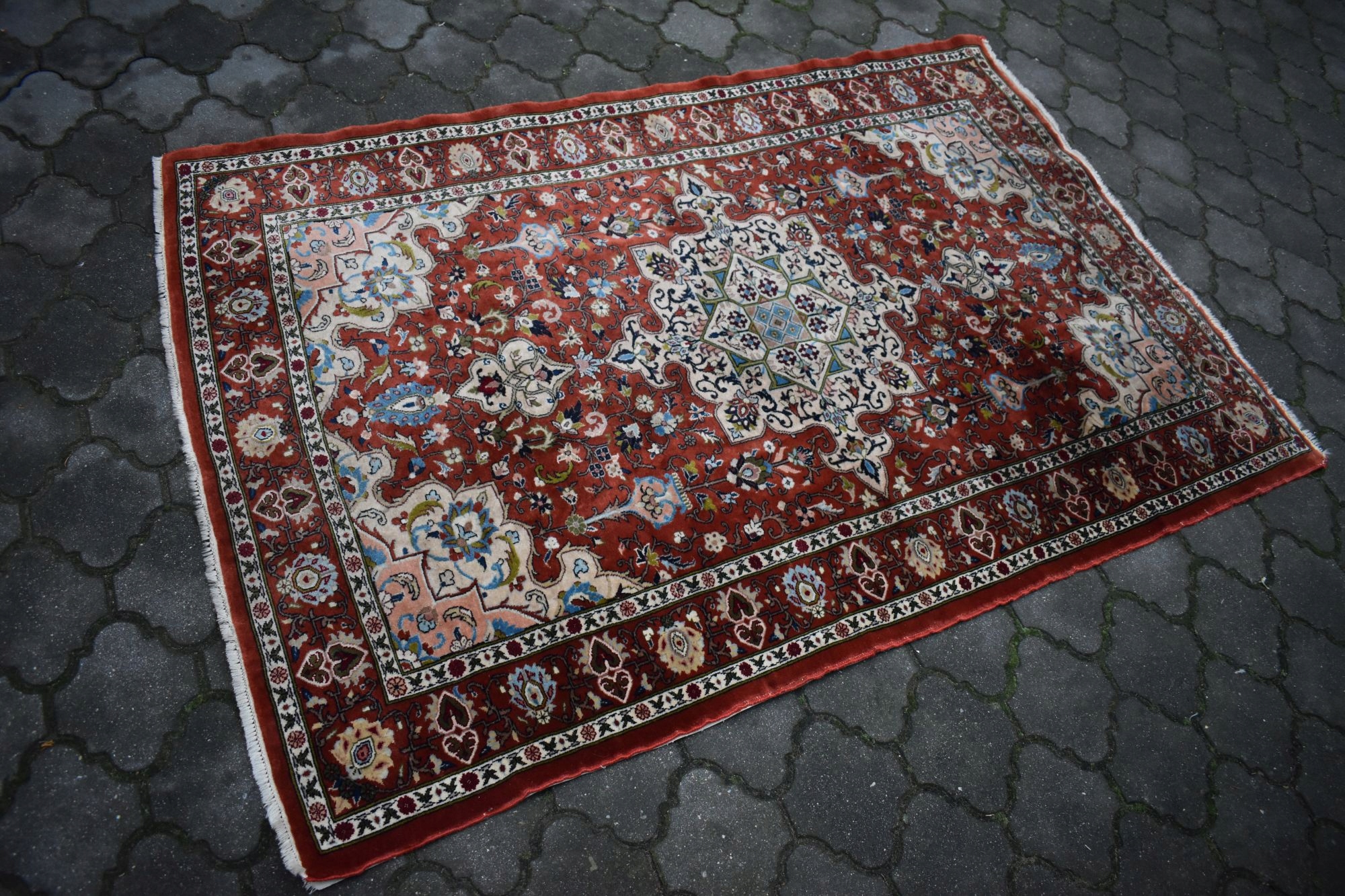 На наступному аукціоні я пропоную вам красивий м'ясний перський килим ручної роботи, виготовлений із вовни найвищої якості! Килим преміум класу, найвищої якості.