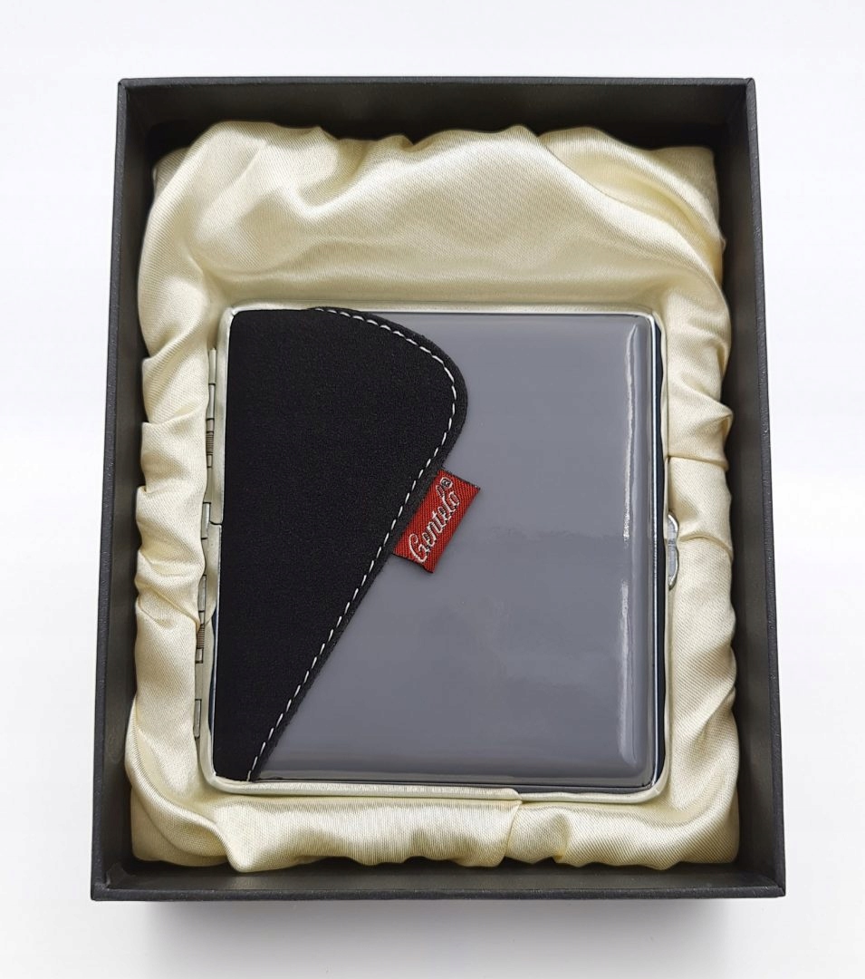 Пропозиція поширюється на подарунковий портсигар, який видно на фото. Портсигар вміщує 20 сигарет. Має лапки, завдяки яким сигарети тримаються на місці і не злітають при носінні портсигара. Він частково покритий шкіряним матеріалом. Він поміщений в елегантну коробку з гарною підкладкою. Ідеально підходить для подарунка. Розміри портсигара 9,5 см на 8 см. Розмір коробки 15,5х12х4 см.