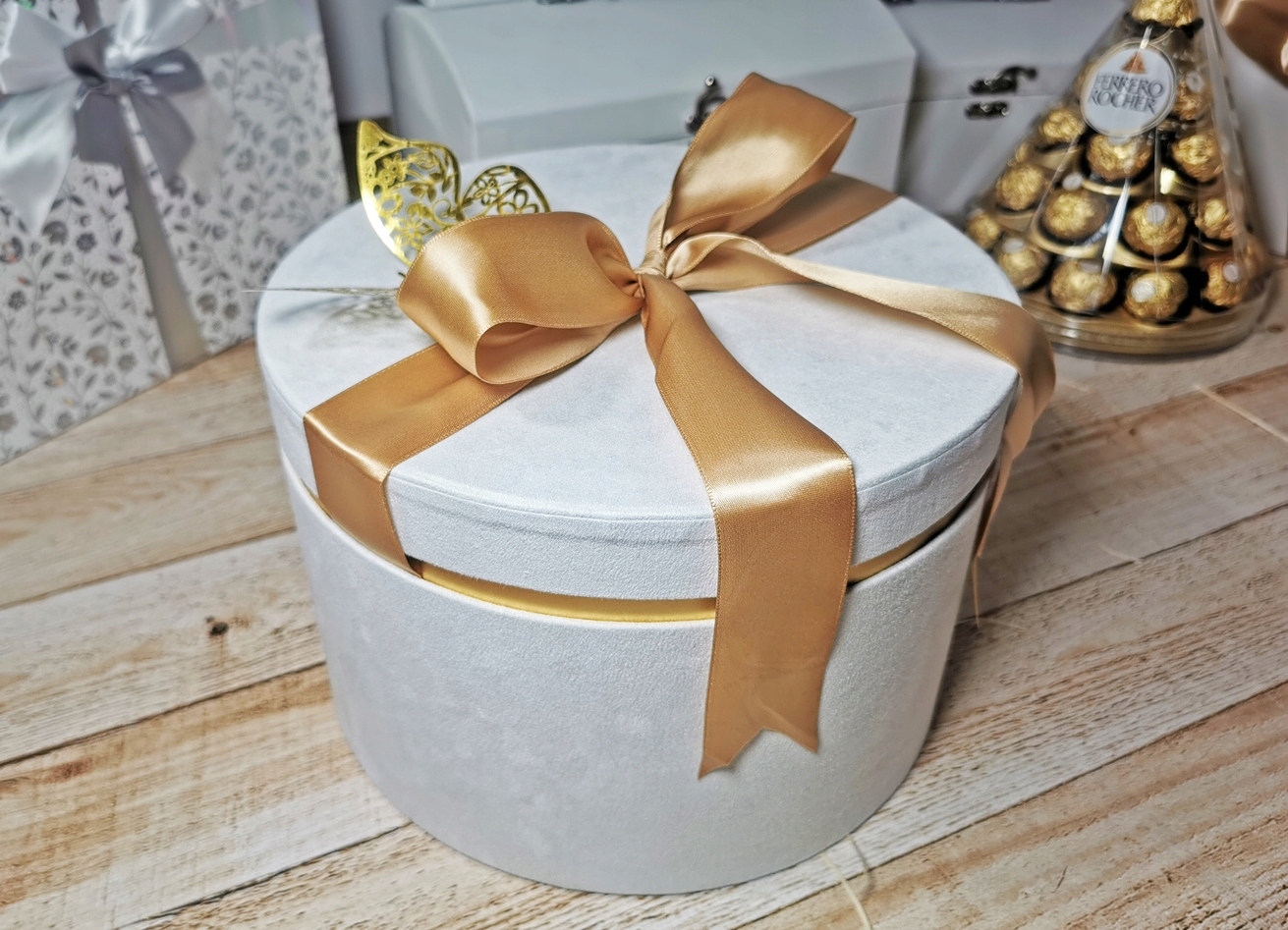 - біла оксамитова коробка + стрічка