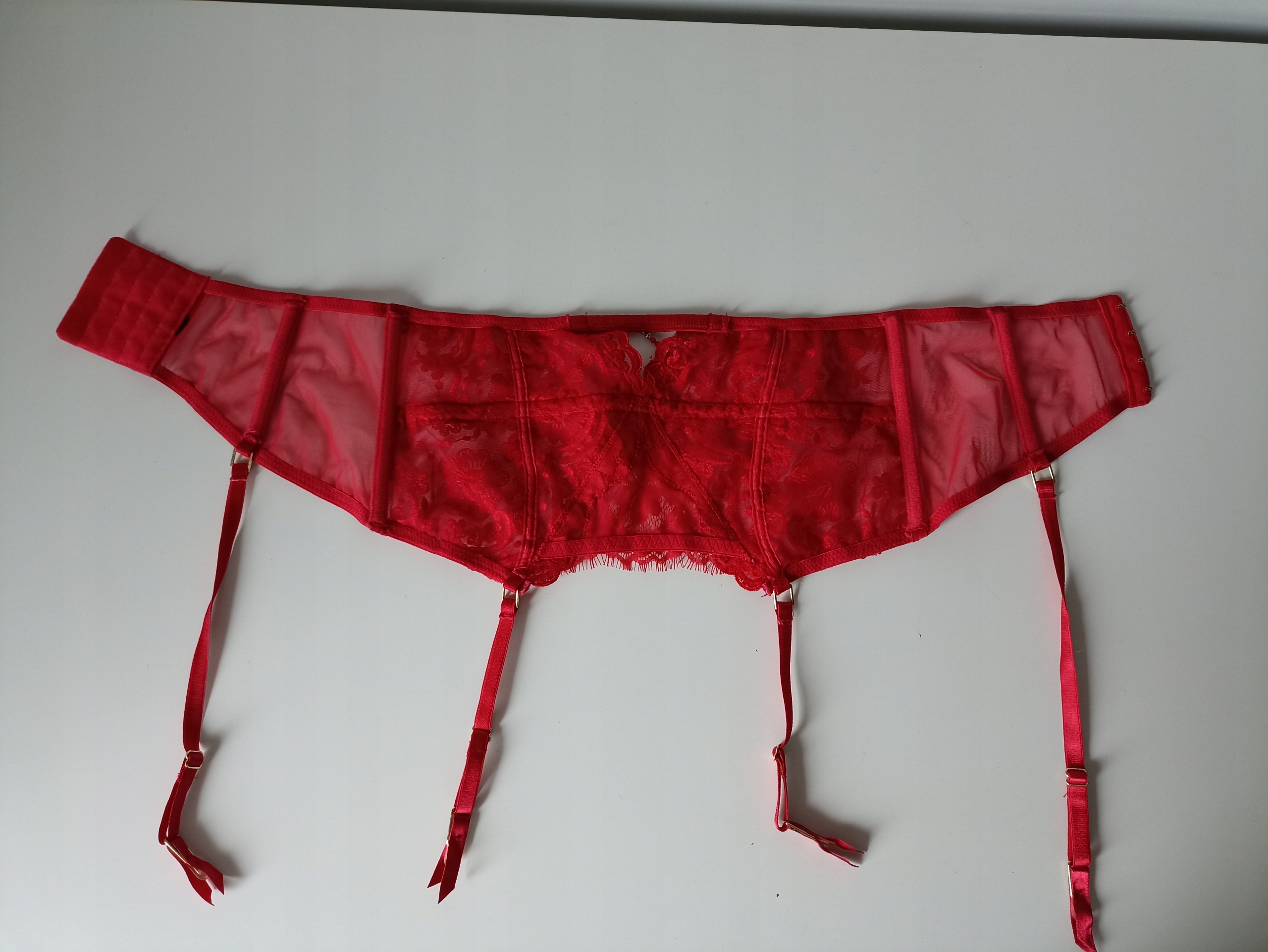 Гарний пояс для підв'язок, соковитого червоного кольору з красивими прикрасами 38/40