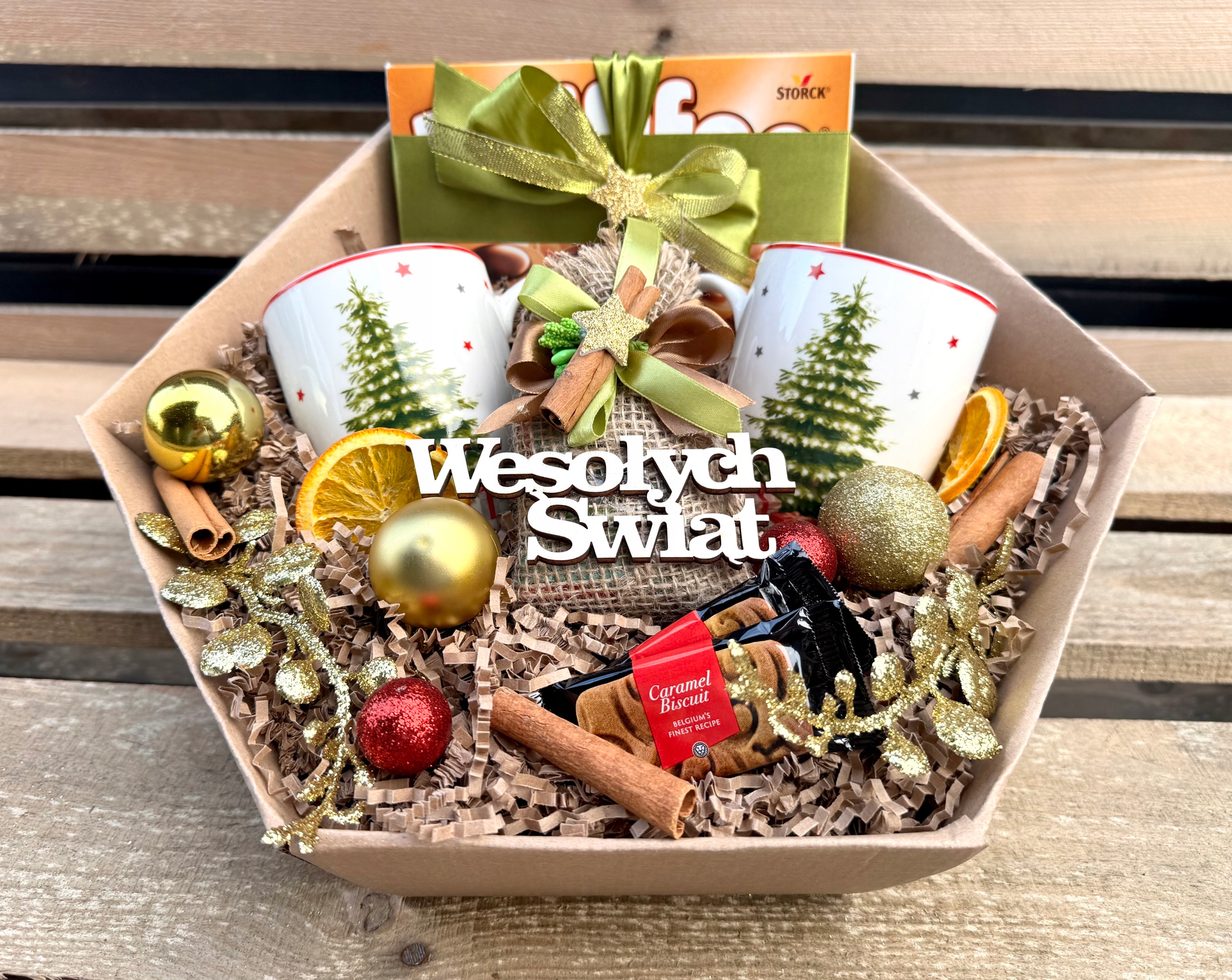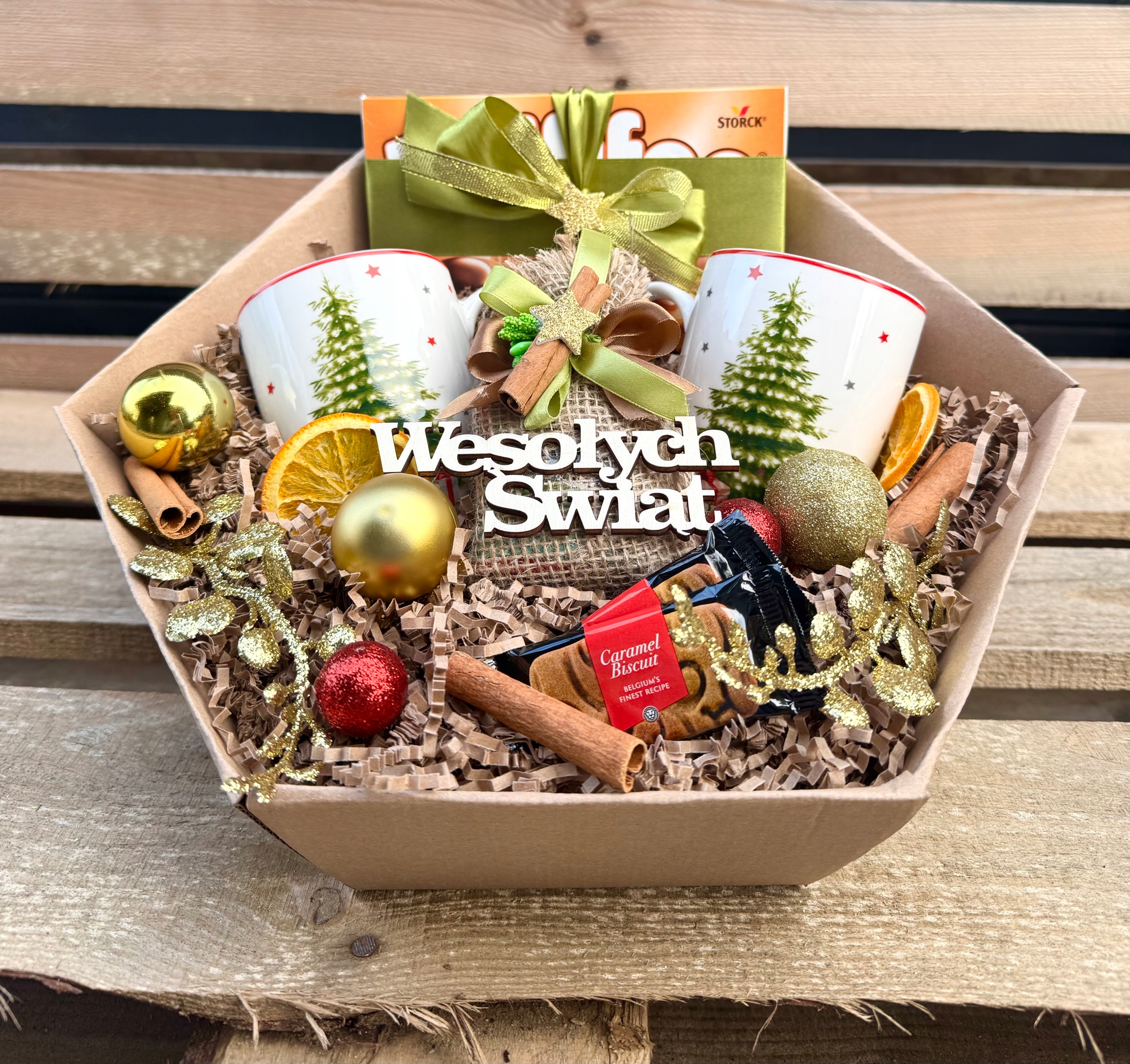 Гарний різдвяний подарунок ВЕЛИКА коробка Подарунковий кошик під ялинку Кружки Чай