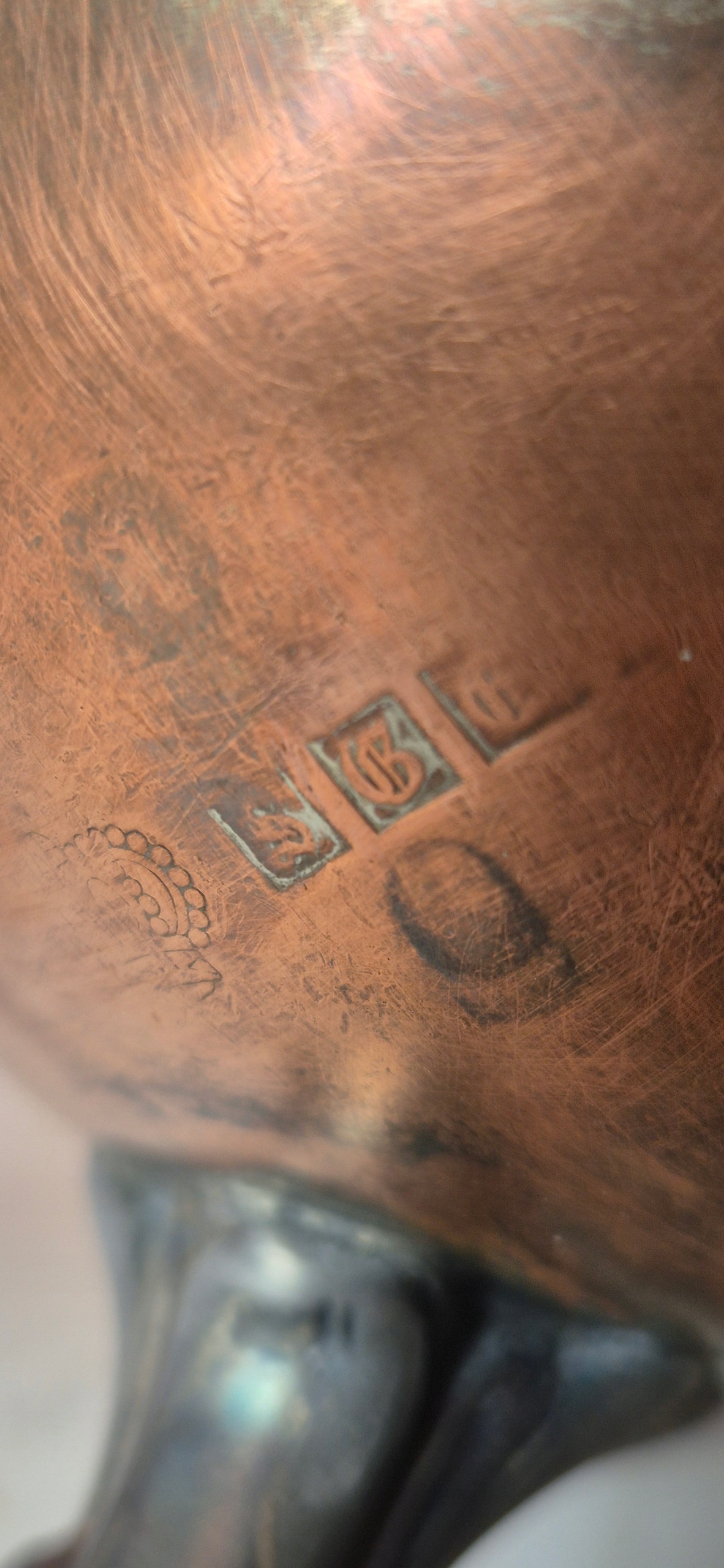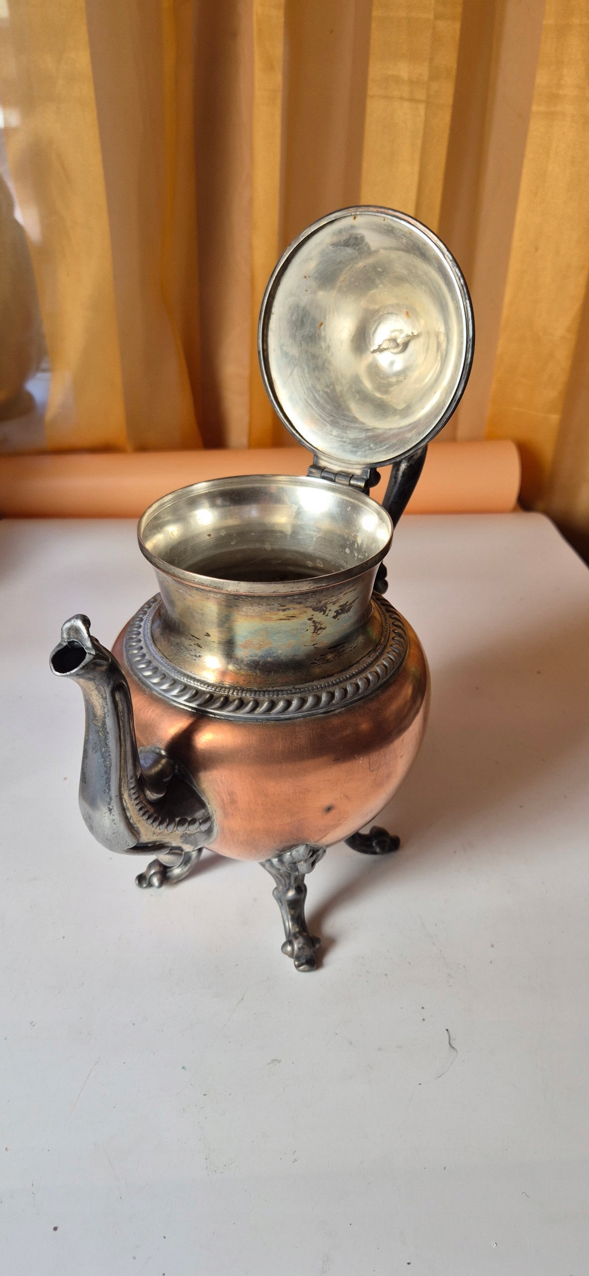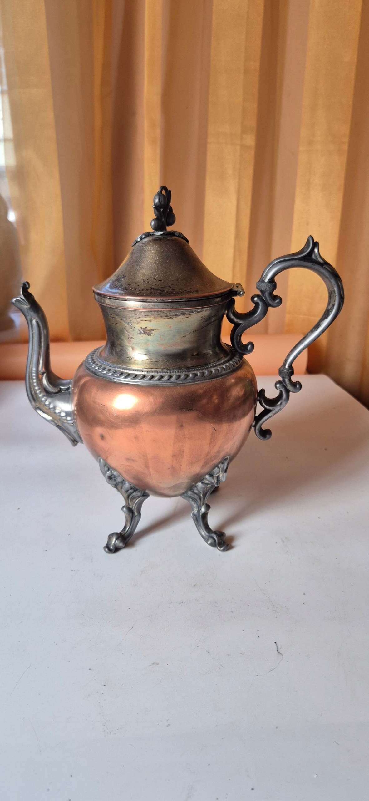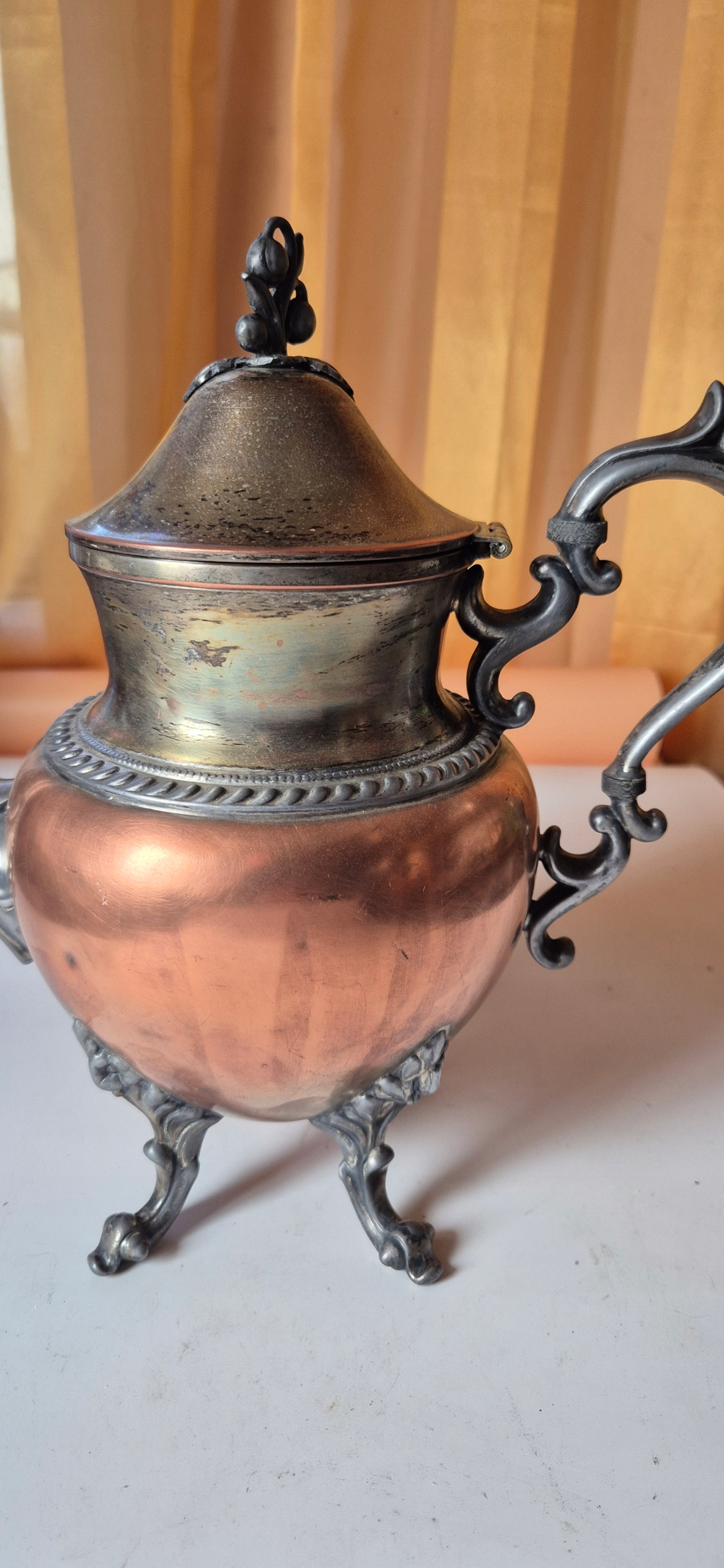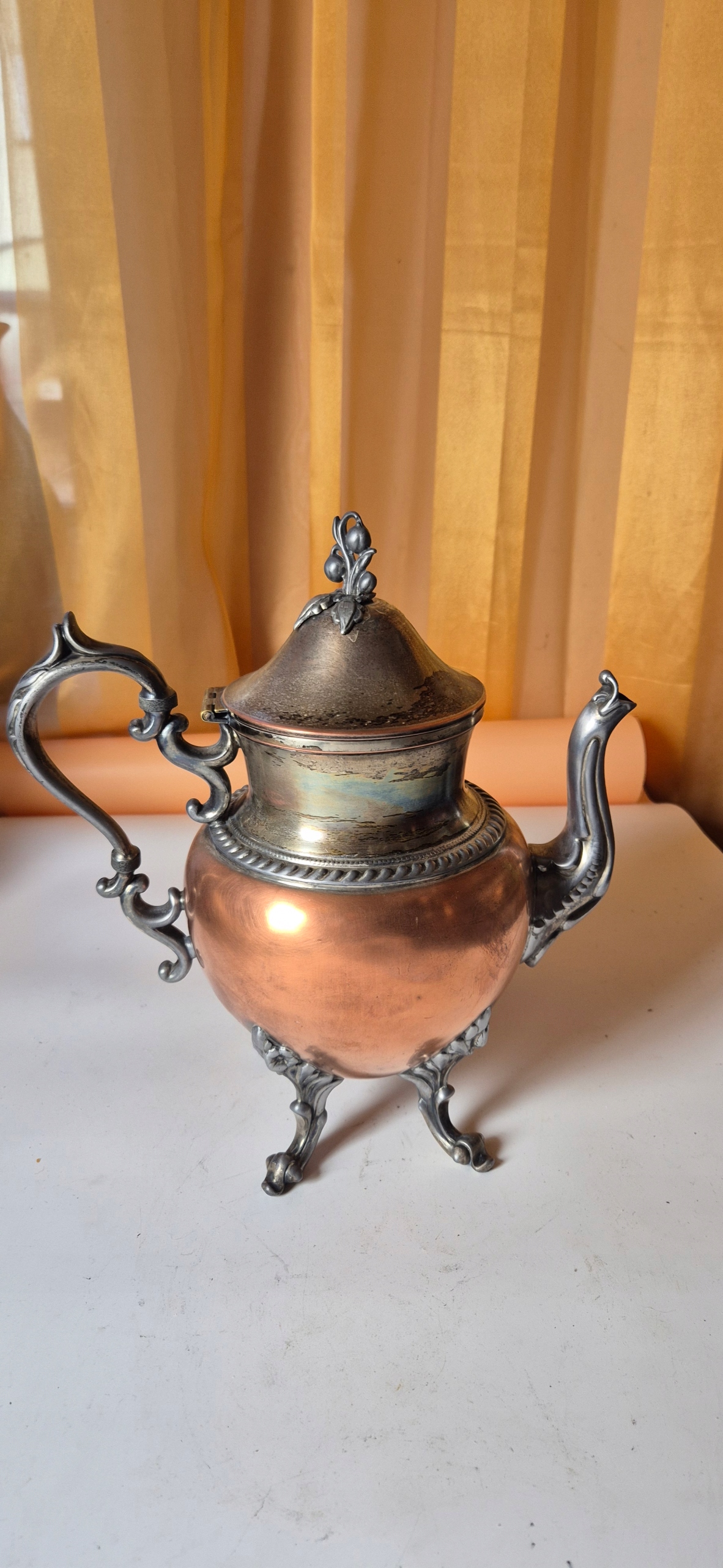 Гарний старий посріблений глечик із підписом, ретро-модерн, покритий міддю