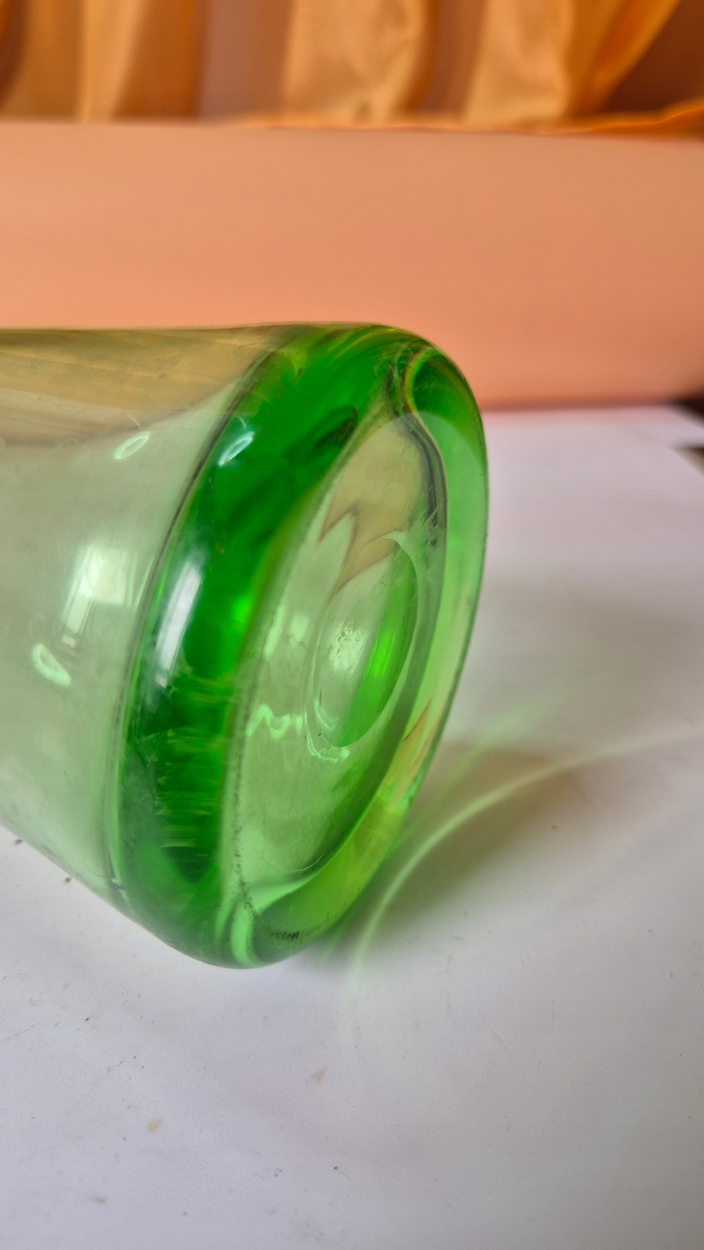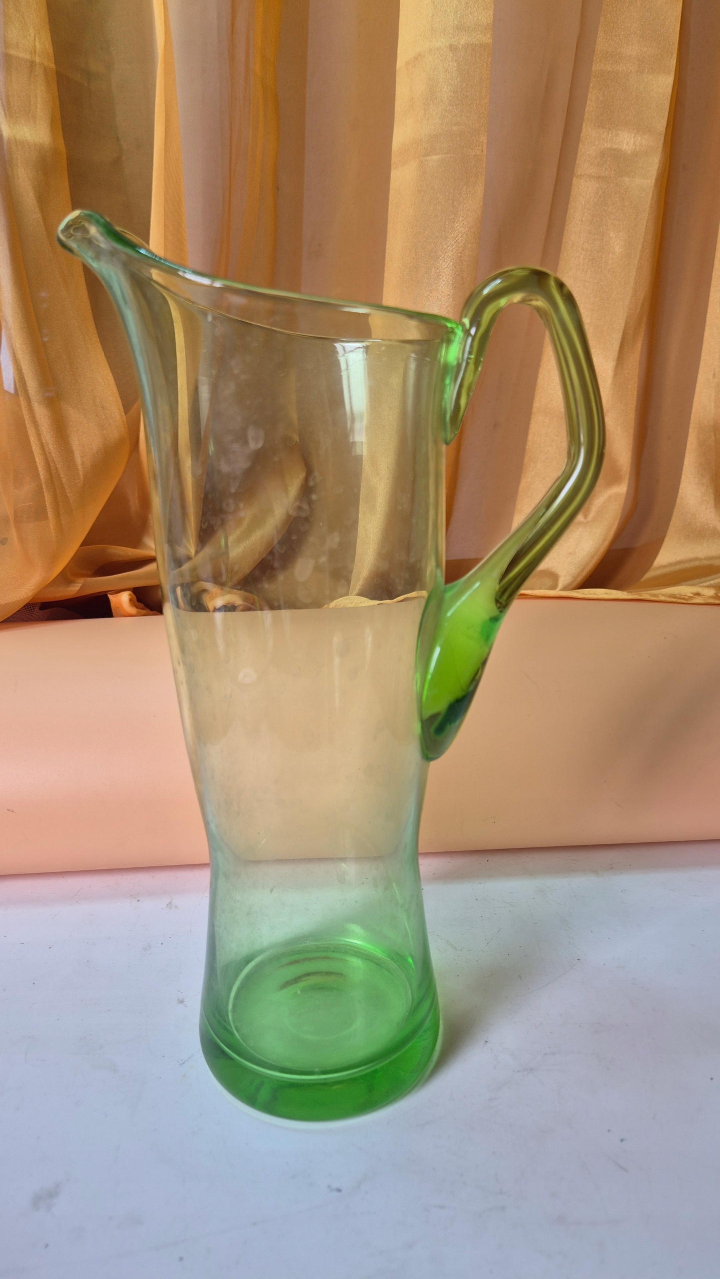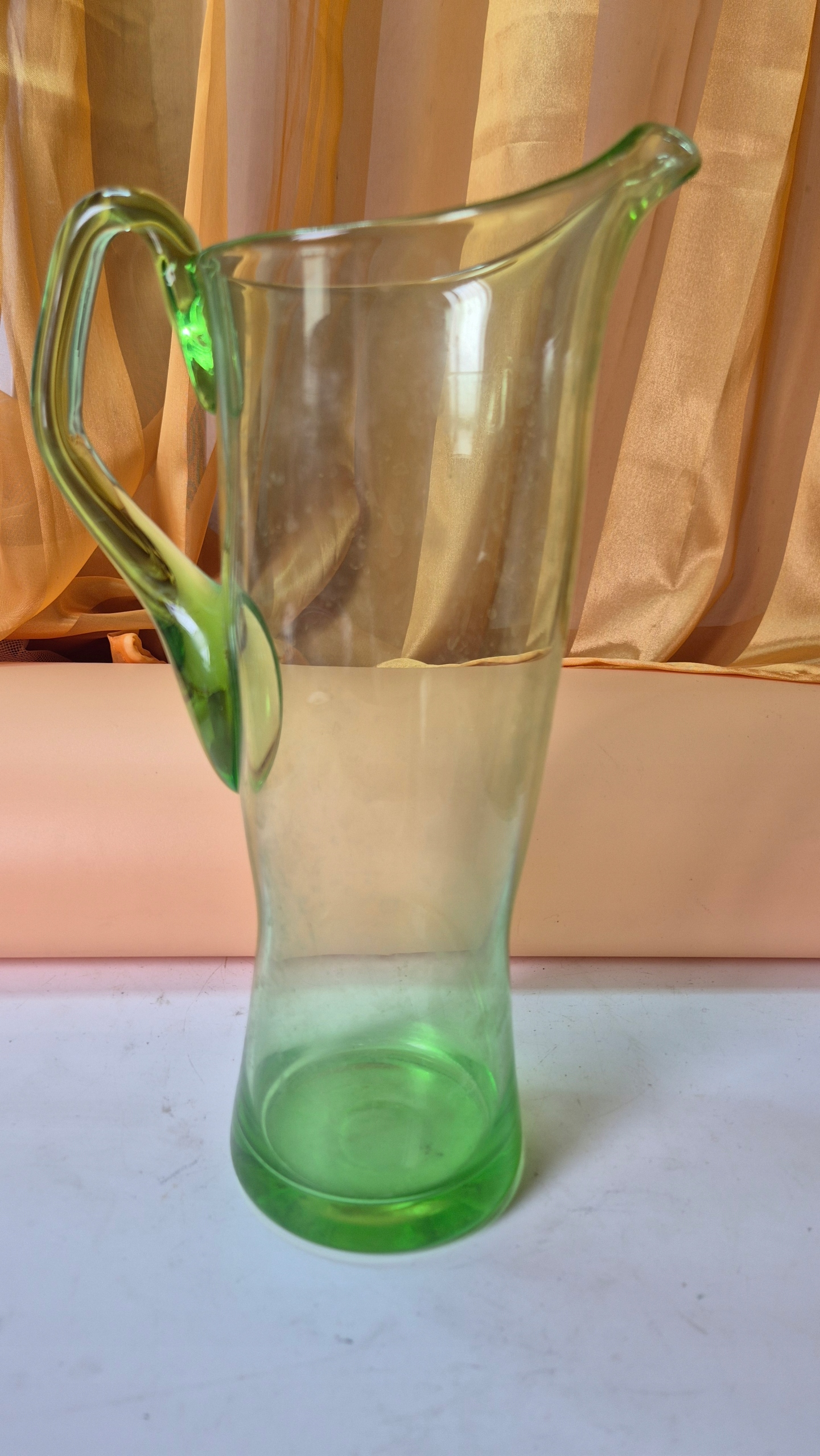 Гарний старий зелений скляний глечик з лінзою з Польської Народної Республіки
