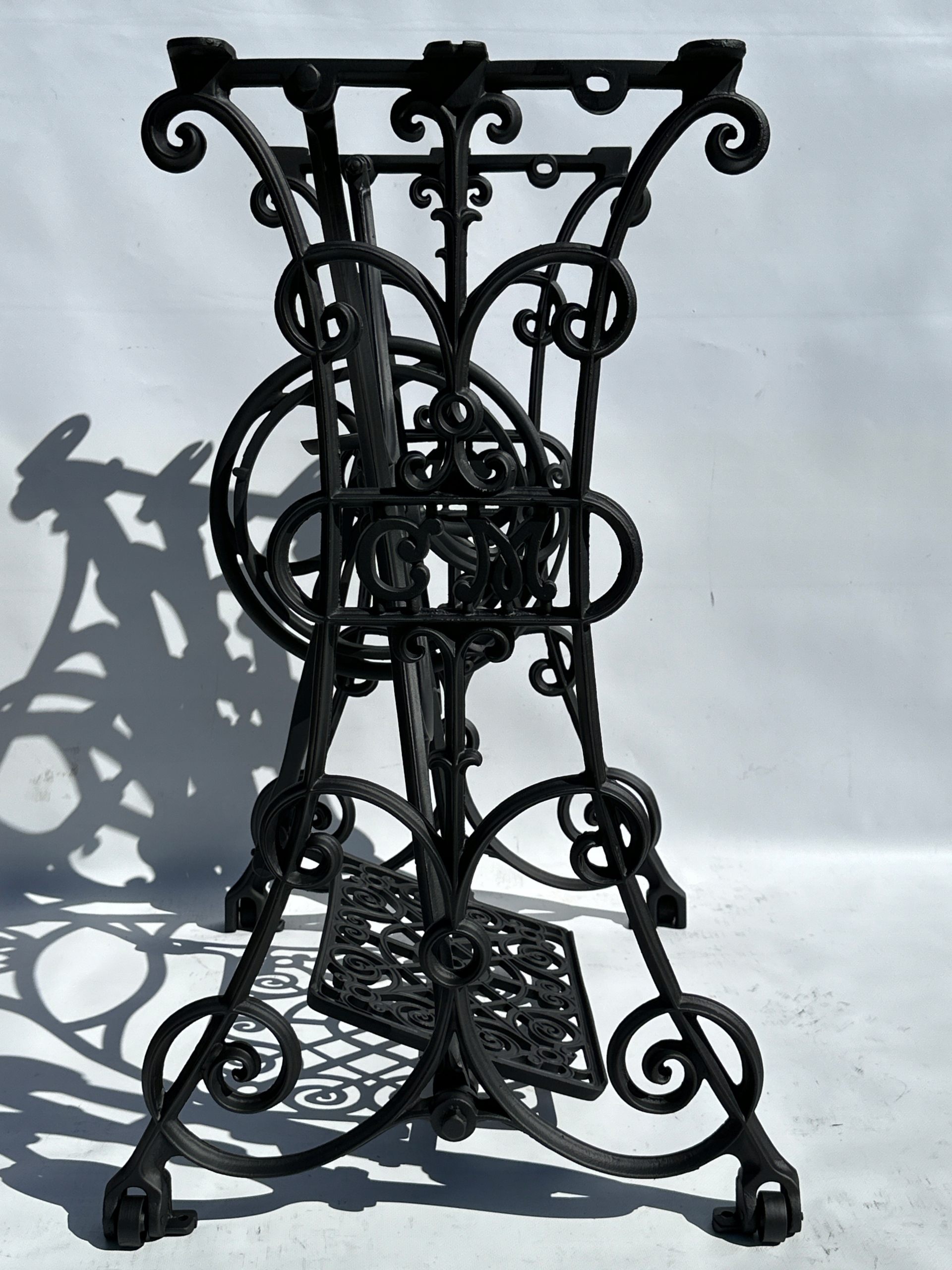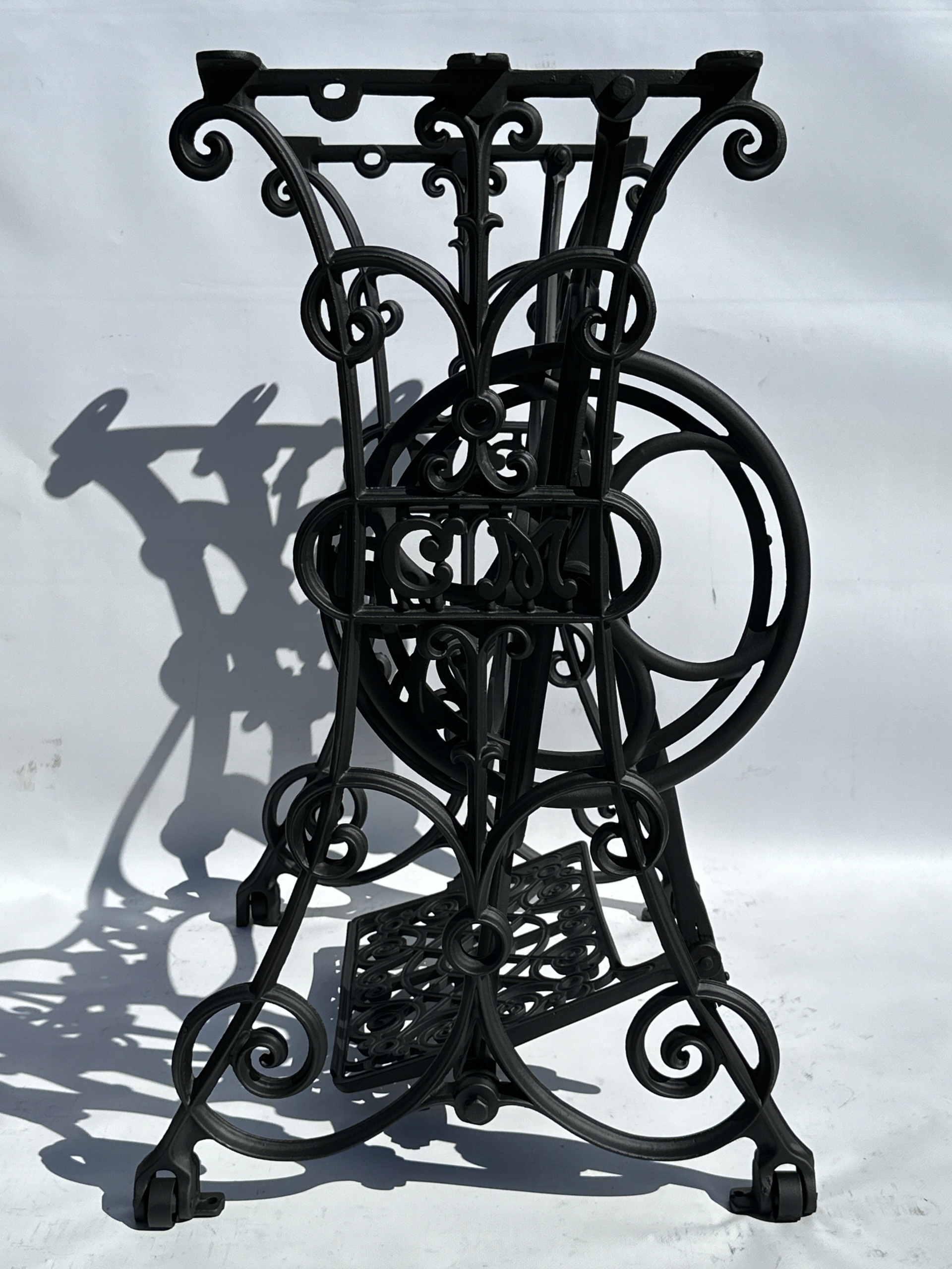Предметом продажу є стара чавунна основа для швейної машини C M - CLEMENS MULLER. Дуже гарний візерунок, менш поширений. З боків є написи C M. Знизу всі 4 кільця.