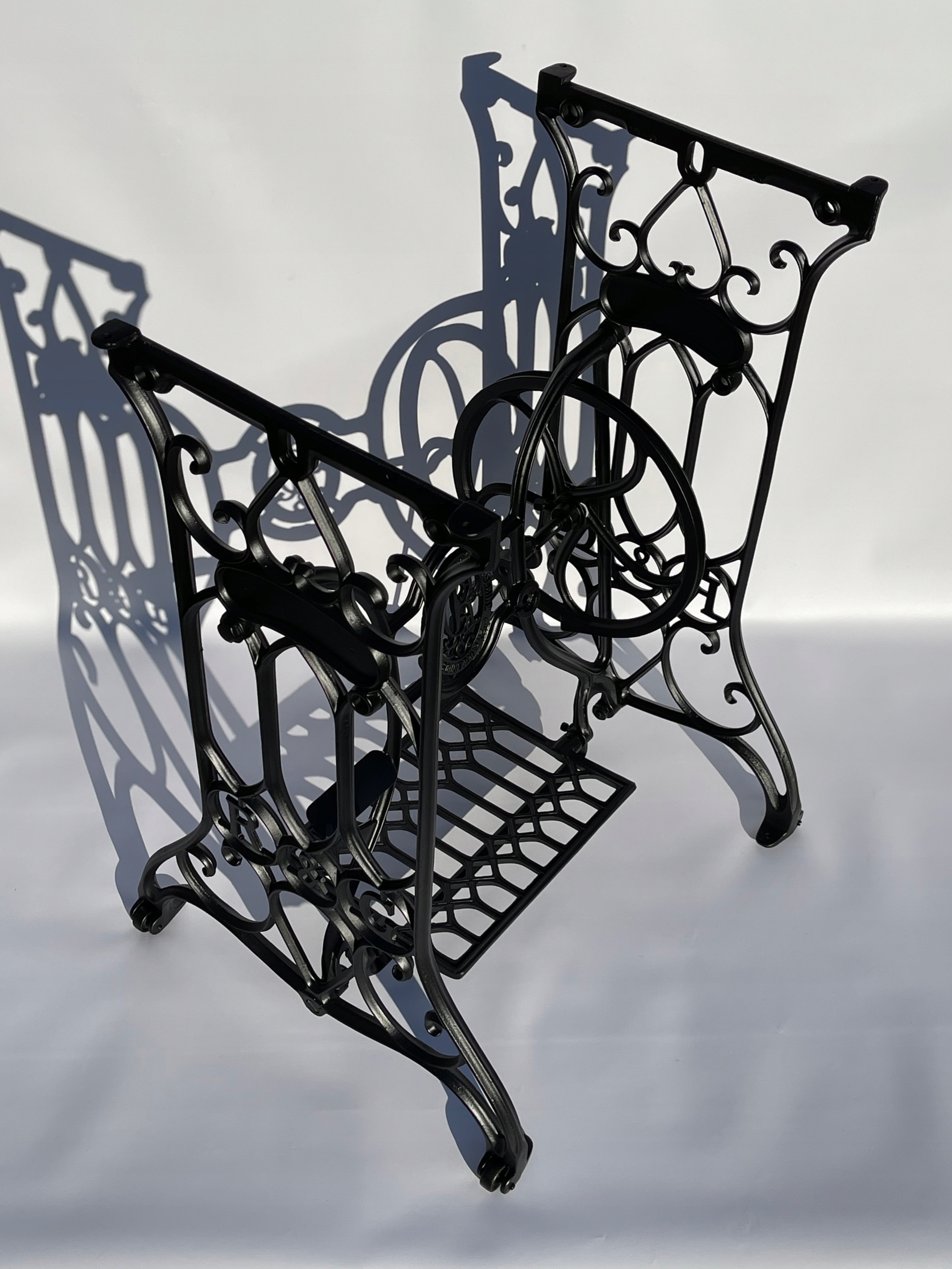 Предметом продажу є стара чавунна основа від швейної машини R & G - RASST & GASSER. Дуже гарний візерунок, менш поширений. З боків написи з логотипом компанії, в середній частині RASST & GASSER NAHMASCHINE SCHUTZ MARKE. Він має всі 4 колеса внизу основи. Додатковою перевагою є металевий елемент, що з’єднує колесо з педаллю приводу, завдяки чому ми можемо бути впевнені, що його не з’їдять дровоєди, що можливо в базах з дерев’яним елементом