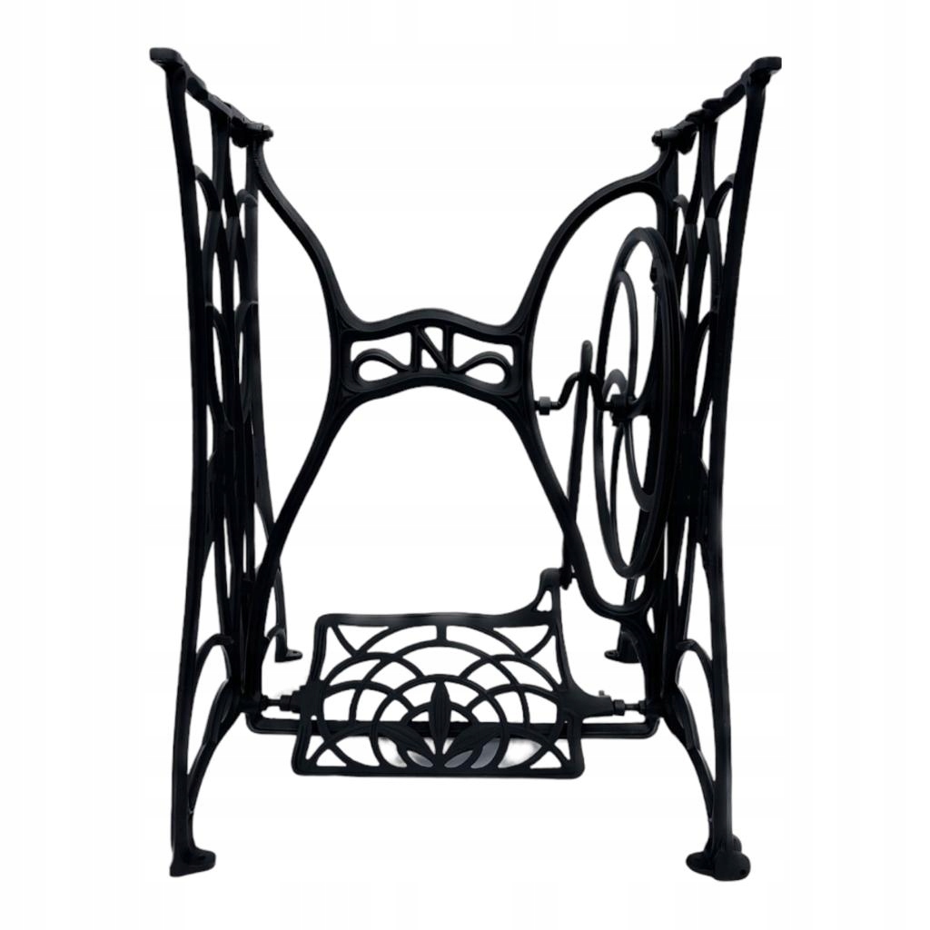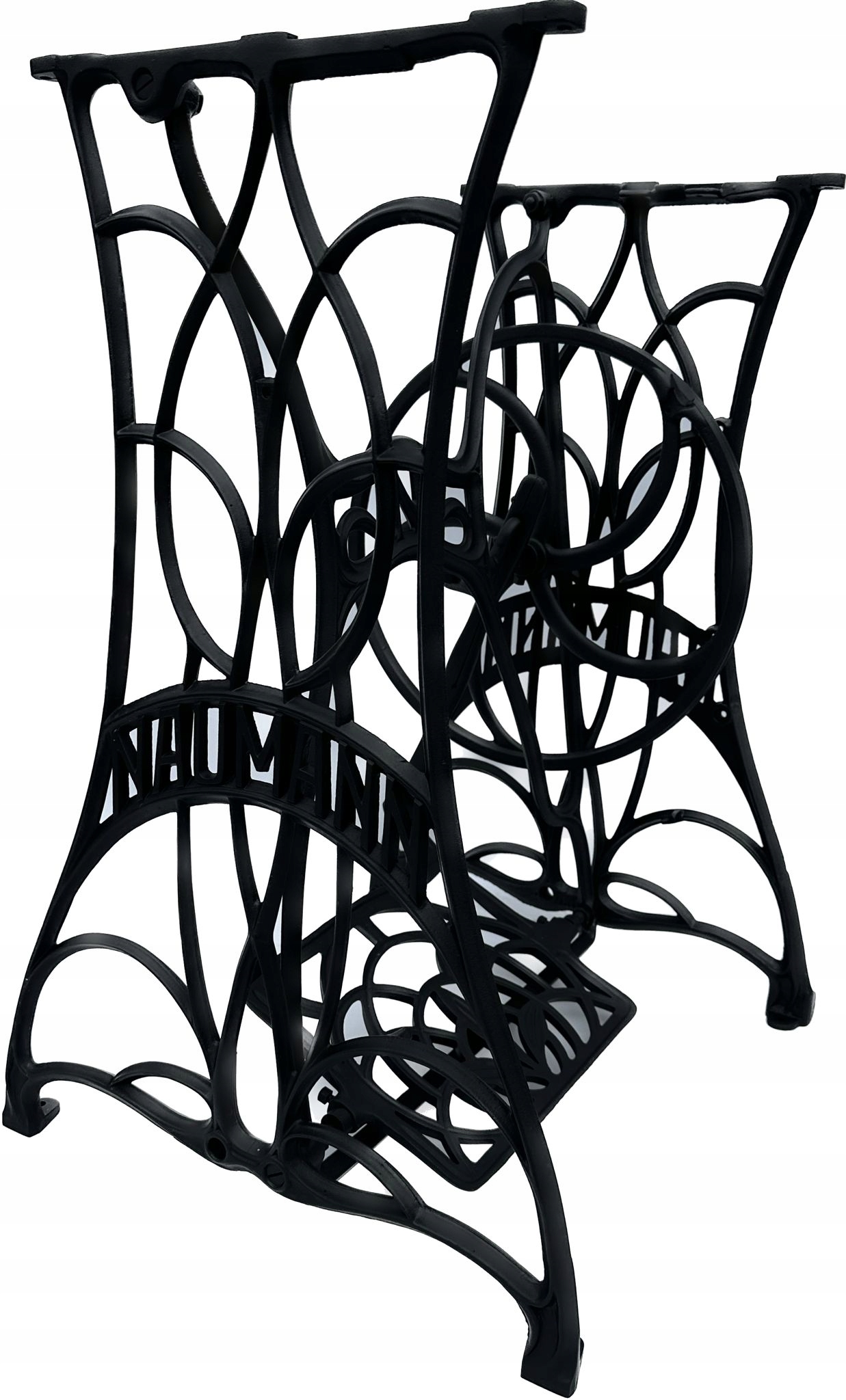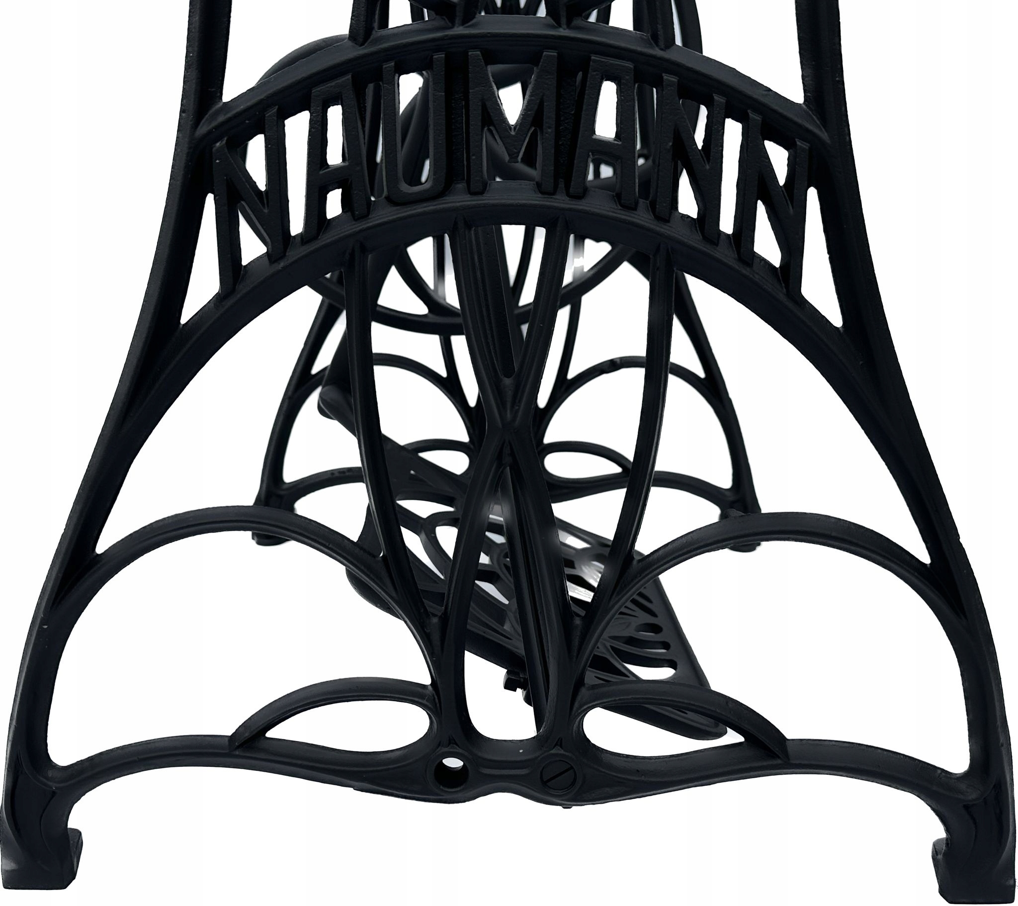 Предмет продажу стара чавунна основа від швейної машинки NAUMANN. Дуже гарний візерунок, менш поширений. З боків написи з логотипом компанії. Обидва колеса в нижній частині були зняті, що робить стіл більш стійким і не рухатиметься.