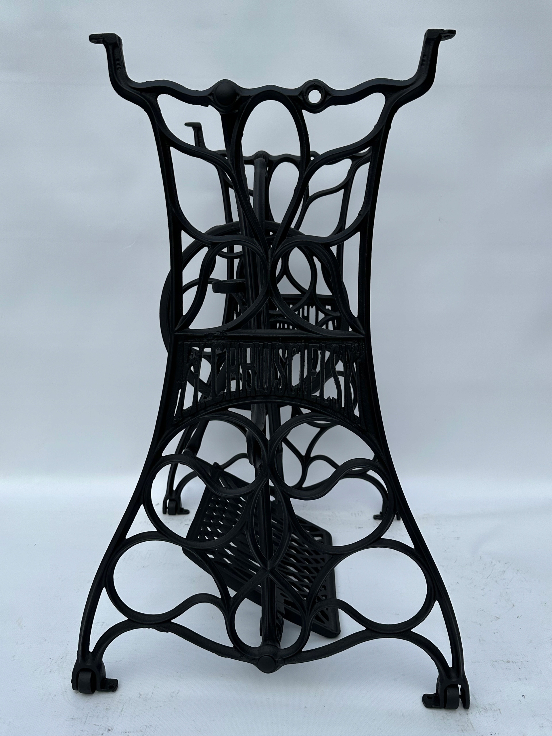У верхній частині є 4 оригінальні отвори для до якого можна прикріпити стільницю. Це видно на останньому фото. Стан - після професійного ремонту. Піскоструменева і пофарбована в чорний колір, як на фото - готова до установки. Після додавання верху він може служити, наприклад, комп’ютерним столом. Якщо ви шукаєте щось оригінальне, цей аукціон саме для вас.