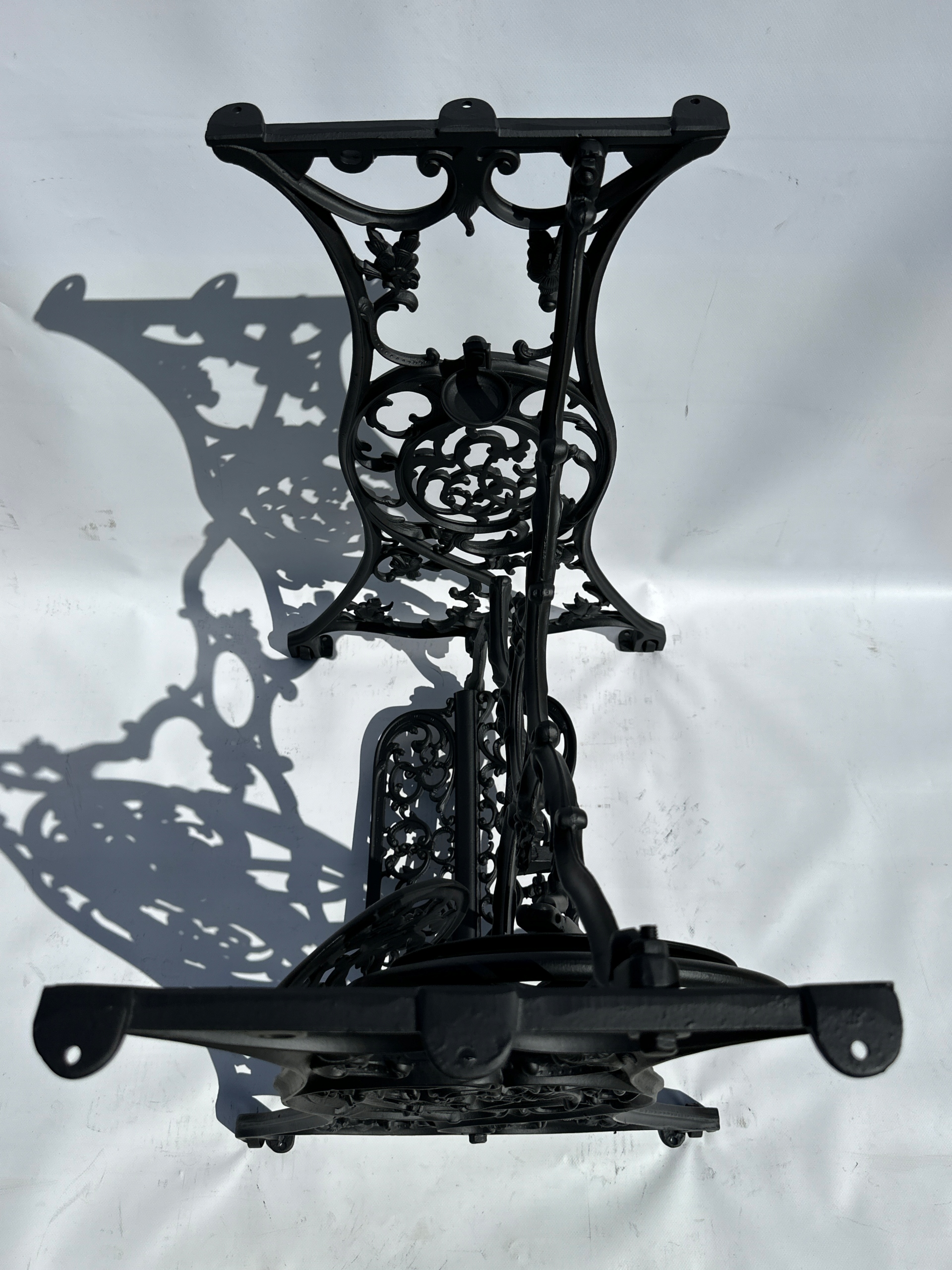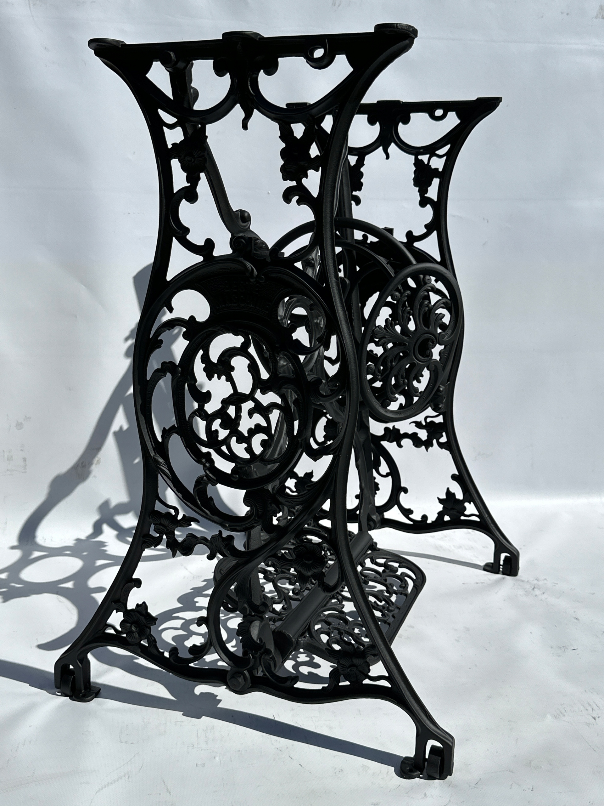Предмет продажу стара чавунна основа від швейної машинки BESTE MASCHINE. Дуже гарний візерунок з красивими квітковими прикрасами. Надзвичайно прикрашена модель періоду модерну, дуже рідкісна. Має всі 4 колеса в нижній частині. Базу з таким багатим оздобленням знайти все важче.