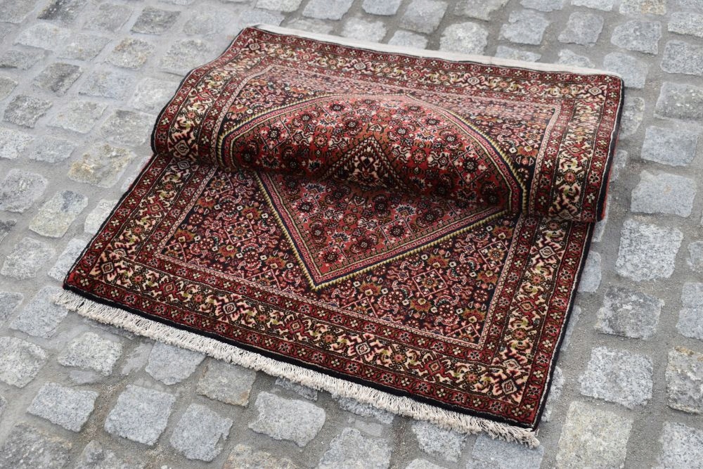 На наступному аукціоні я пропоную вам цінний, хитромудрого ручного плетення, ручного плетення, чистий перський килим BIDJAR TAKAB - Made in Iran! Килим преміум класу, найвища якість. Килим оригінально оброблений вузликом з одного боку та бахромою з іншого.