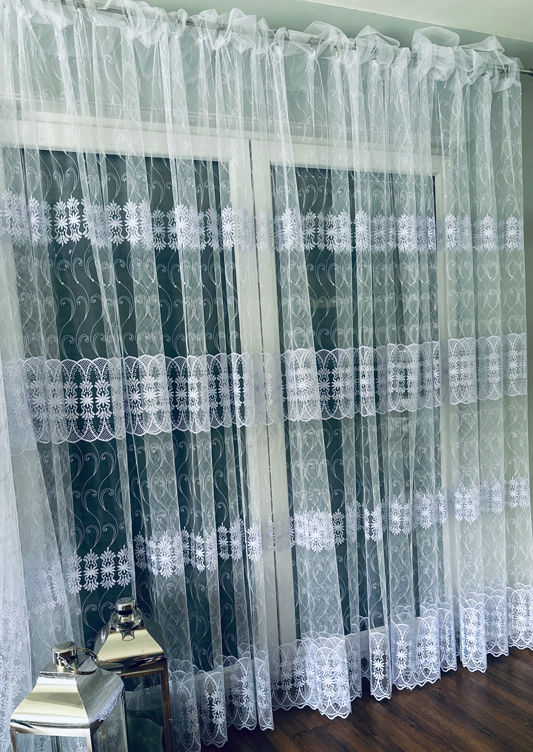 ГАРНИЙ ТУРЕЦЬКИЙ ТЕНЗ КВІТИ СКЛО ДУЖЕ БАГАТА ВИШИВКА СУЧАСНА ШТОРА