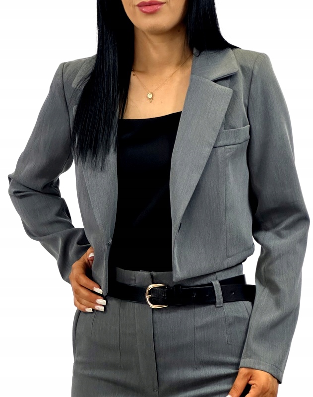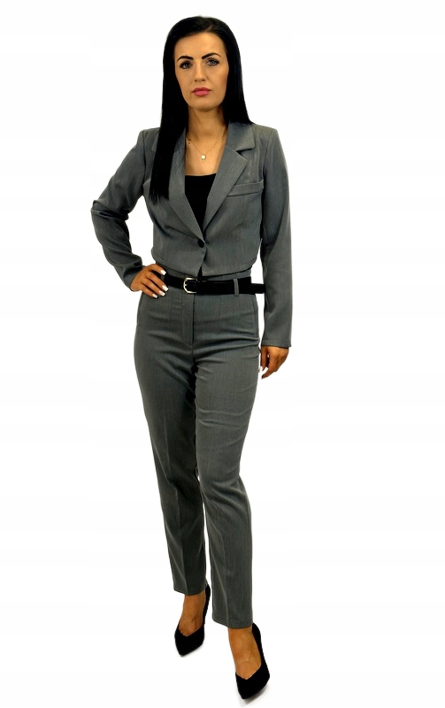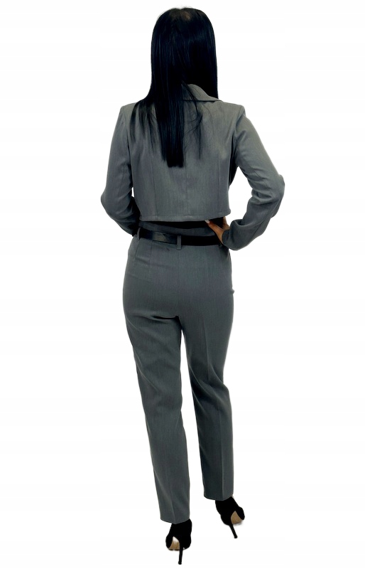 GARNITUR DAMSKI KRÓTKI ŻAKIET SPODNIE SZARY