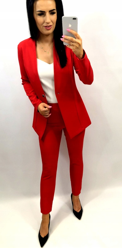 Garnitur damski z paskiem i klamrą CZERWONY