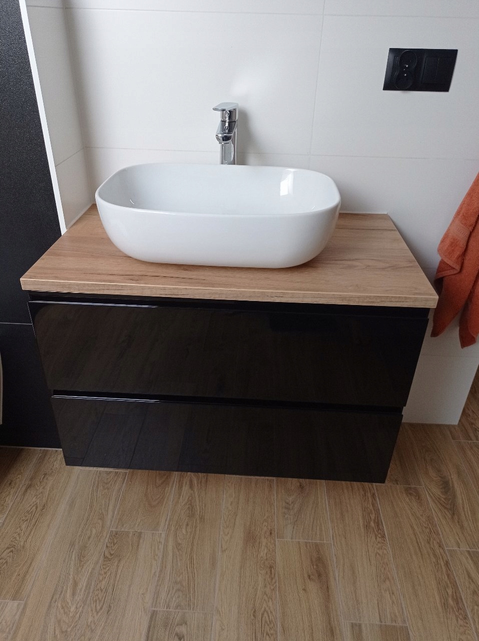 ГАРНІТУР ДЛЯ ВАННОЇ З ДУБОВОЮ СТІЛЬНІЦЮ 80, чорний глянець