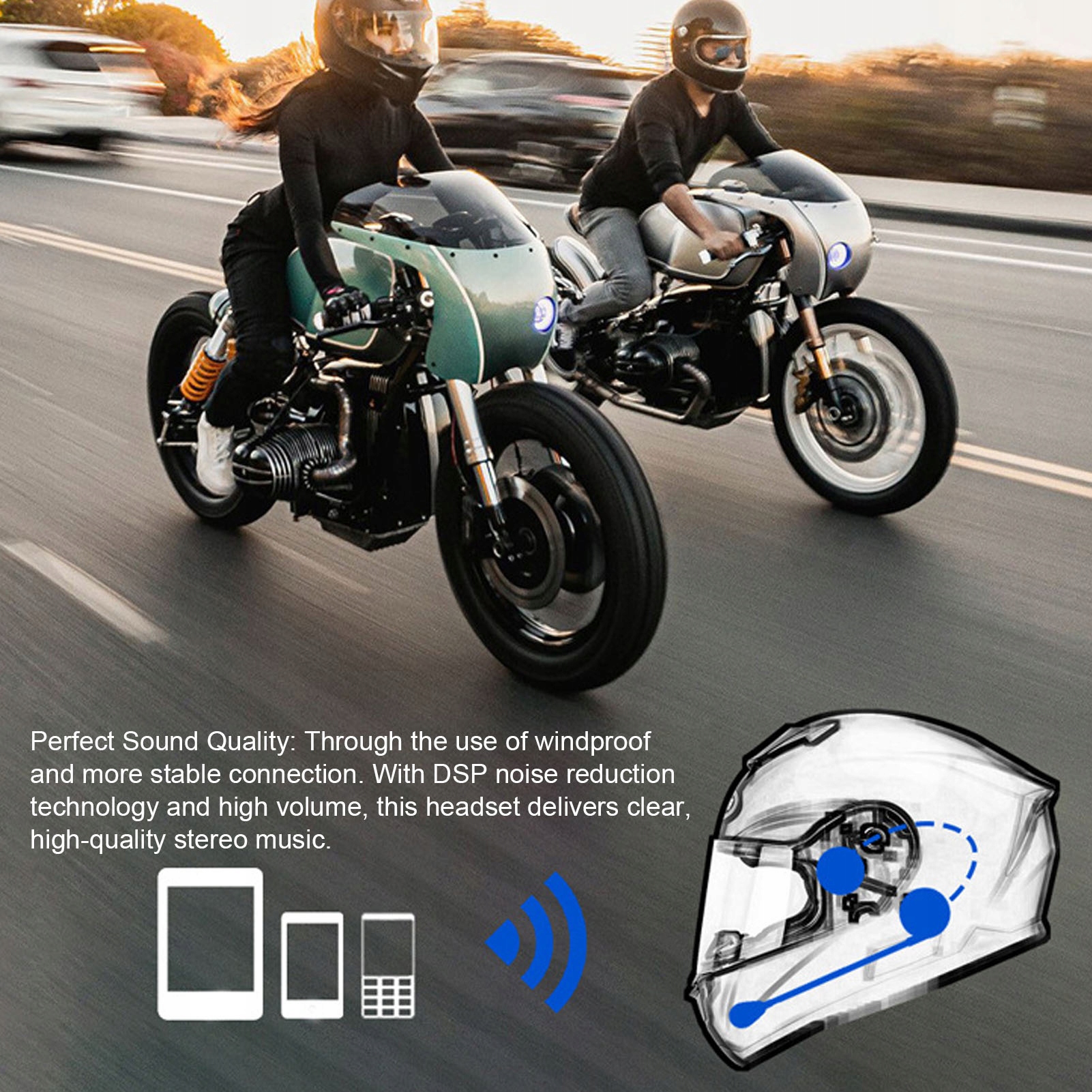 1. Відмінна якість звуку: завдяки використанню вітряного та стабільнішого з'єднання. Завдяки технології зменшення шуму DSP та високому обсязі, цей набір навушників забезпечує чітку якість стерео музики. Сильна сумісність: навушники з мотоциклів мають вдосконалений динамік, більш об'єм, сумісний з усіма смартфонами, незалежною підтримкою MP3, GPS, придатною для їзди на мотоциклах, лижах, верхової їзди тощо. Bluetooth 5.0: Набір навушників шолома використовує технологію Bluetooth 5.0, щоб зробити з'єднання пристрою більш стійким; Технологія зменшення шуму усуває всі види шуму, завдяки якому спілкування є рідким та стабільним, а водіння з високою швидкістю забезпечує стереосистему якості звуку. Легка установка: навушники бездротового шолома мають кріплення на липучках, прості в установці в шоломі та безпеці. Звільніть руки, щоб ви могли насолоджуватися безпечним та бар'єром, не використовуючи телефон під час руху, швидкого та комфортного. Довгий робочий час: навушники з мотоциклів, оснащені вбудованою літієво-полімерною батареєю, ємністю 180 мАг. Наш набір для навушників мотоциклів характеризується тривалим очікуванням та робочим часом. Бездротова передача звуку та гарнітура шолома підходять для інтелектуальних пристроїв з функцією Bluetooth.