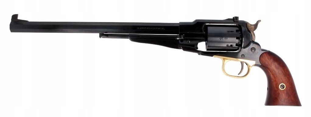 Remington 1858 New Model Army Buffalo Carbine .44, шестизарядний ударний револьвер з чорним порохом фірми Remington, калібр .44, дульнозарядний пристрій із закритою сталевою рамою, чорний оксидований. Модель Buffalo Carbine має можливість регулювати прицільні пристосування.