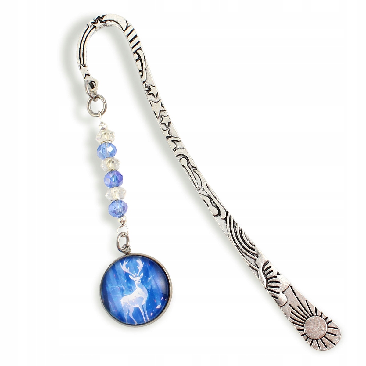 На закладці зображено красиве оригінальне зображення патронуса - оленя. Ніжні скляні кристали відбивають світло, додаючи закладці блиск і таємничий шарм. Це ідеальне доповнення до будь-якої книги та перенесе вас прямо у чарівний світ.