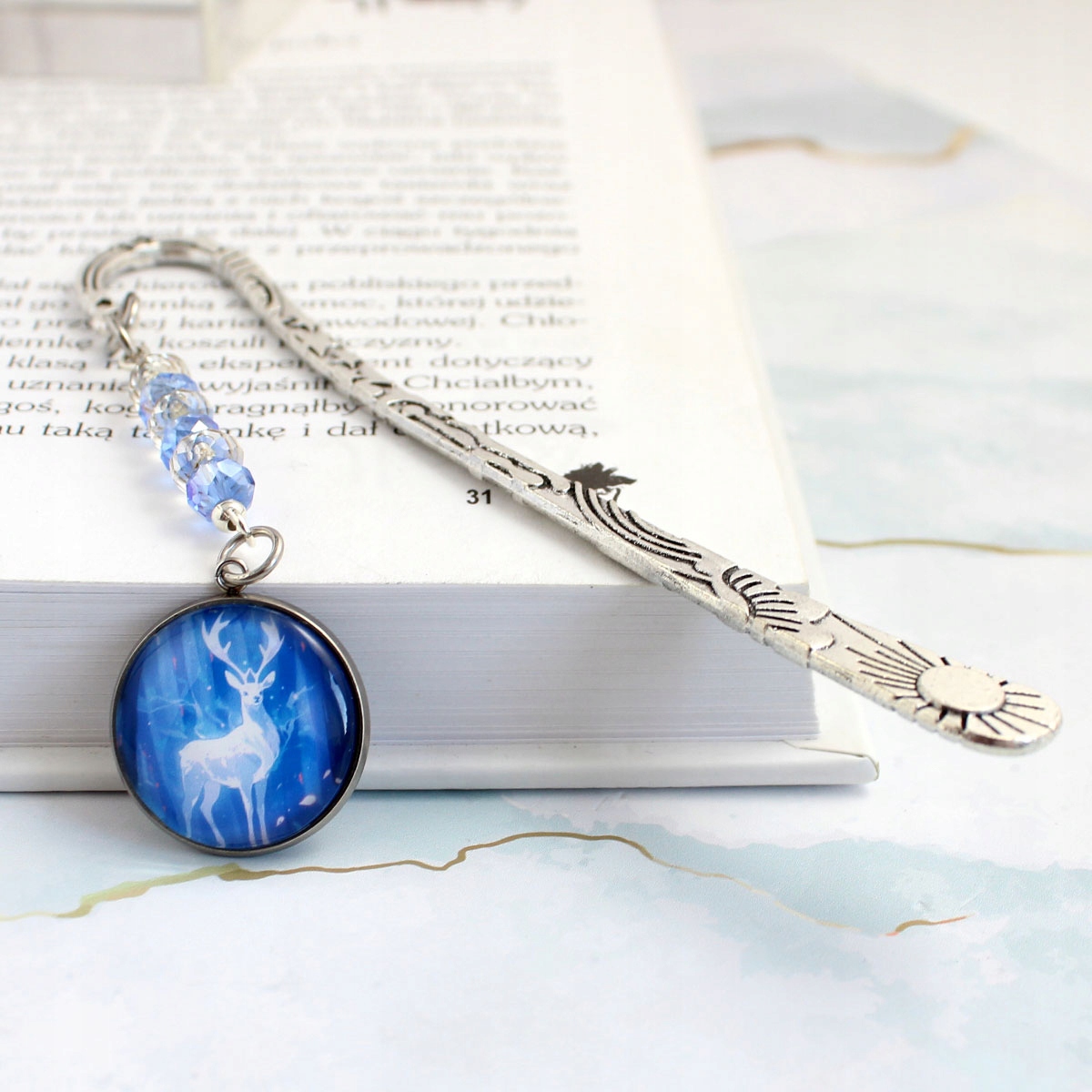 На закладці зображено красиве оригінальне зображення патронуса - оленя. Ніжні скляні кристали відбивають світло, додаючи закладці блиск і таємничий шарм. Це ідеальне доповнення до будь-якої книги та перенесе вас прямо у чарівний світ.