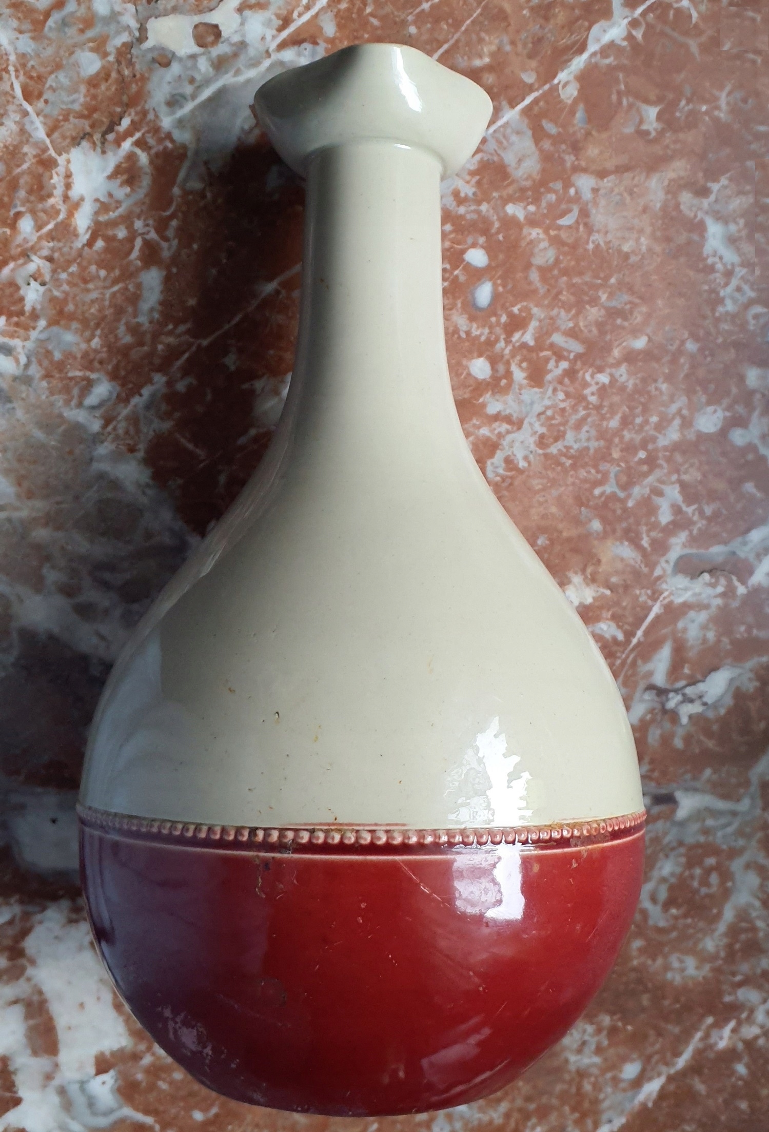 Пропоную рідкісну керамічну пляшку від компанії Hartwig Kantorowicz POSEN - Познань, дефект, який видно на фото, становить прибл. 6-7 см в діаметрі, помітні потертості в нижній частині пляшки, підпис на денці, "Ємність. бл. 0,7 л, рідкість!! Я додав фото порівняння до пляшки, яка була на останньому фото - це був апельсиновий лікер.