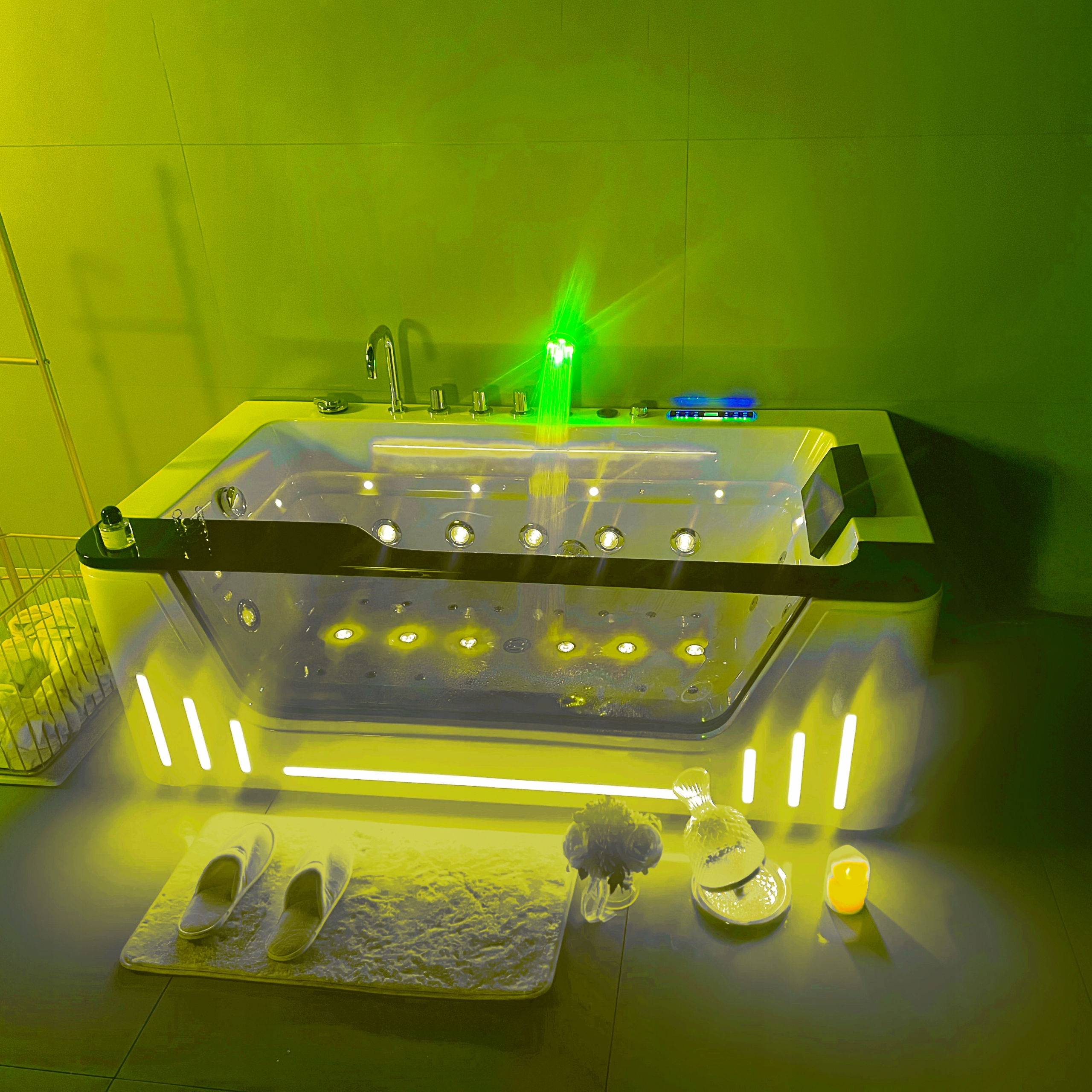 гідромасаж вода: 7 шт великих, регульованих, різнокольорових світлодіодних струменів RGB у стінці ванни (водяний насос 1,5 HP TUV, сертифікат CE)