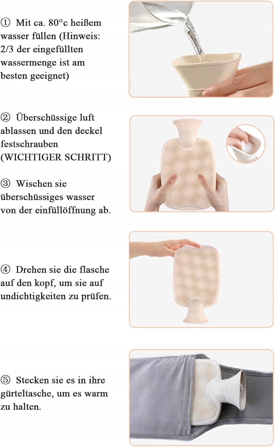 Легко заповнити та стійкий до витоків завдяки широкому отвору та високій якості гуми. Насолоджуйтесь надійним теплом без ризику опіків та витоків.