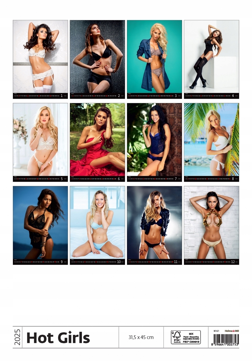 Календар Hot Girls Multi -Black для 2025 Helma 365 Publishing House -це колекція фотографій прекрасних дівчат, що позують у нижній білизні. Фотографії, вибрані зі смаком, порадують тих, хто шукає календар зі смаком та уваги з жінками.