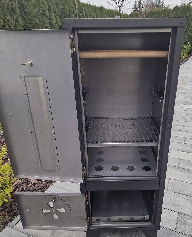 ✔️ Smokehouse is made of 1.2 mm thick black sheet metal, steel comes from Polish steel steel with high standards