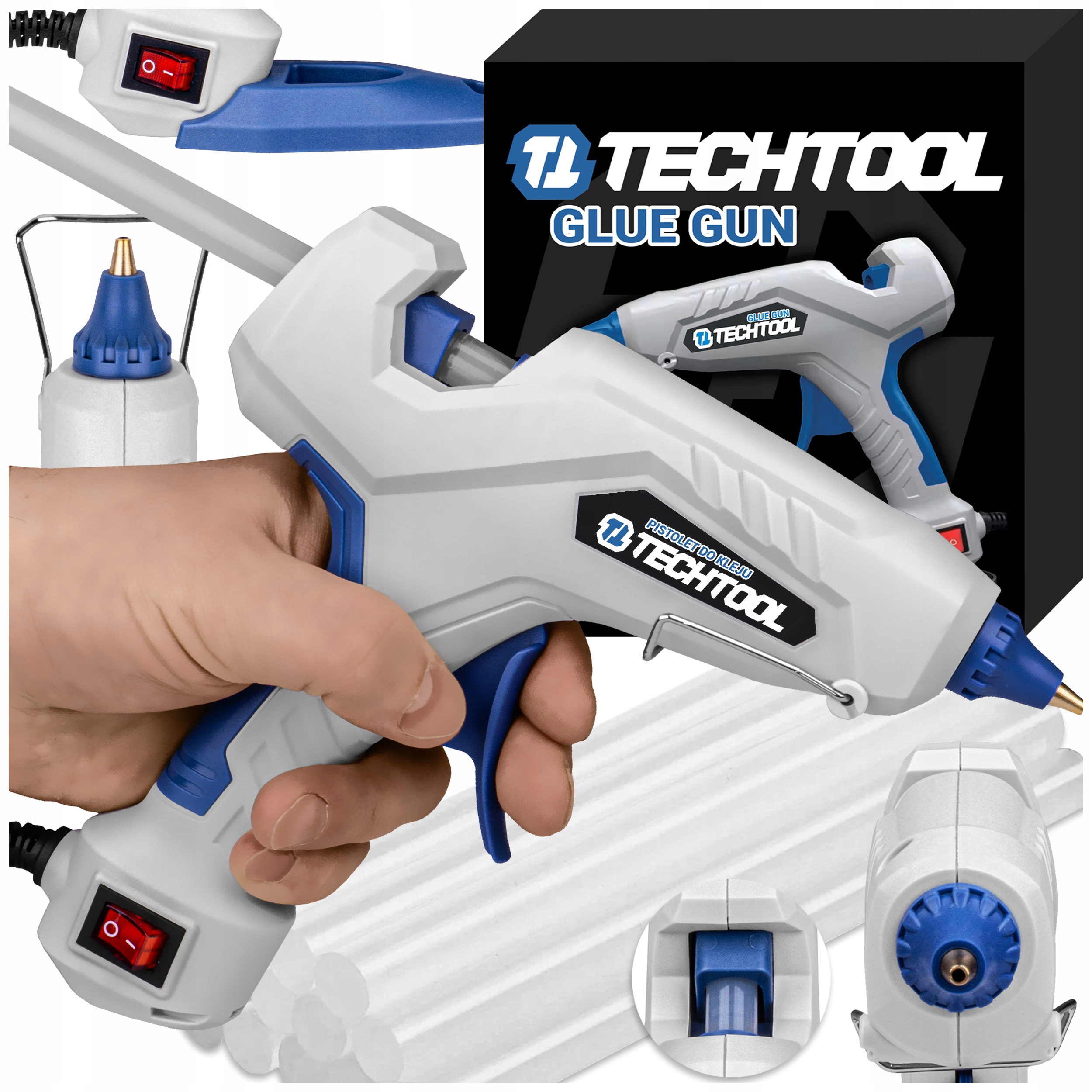 ГАРЯЧИЙ КЛЕЄВИЙ ПІСТОЛЕТ, 100 Вт КЛЕЙ + КЛЕЙ, 11 ММ КАРТРИДЖІ, СИЛЬНИЙ TECHTOOL