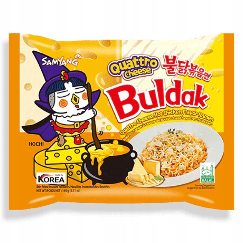 Харчова цінність/100 г: 1702 кДж/407 ккал, жир 13,1 г, включаючи насичені жирні кислоти 6,2 г, вуглеводи 60,7 г, включаючи цукру 7,6 г, білок 11 г, сіль 3,4 г. пшениця , сіль, гліцерин, соєва олія , гума гуар, вода, карбонат калію, рибофлавін (барвник). Sauce: water, cheese sauce [mozzarella cheese ( whey , dextrine, enzymes, annato extract [dye]), water, yeast extract, degreased milk powder], sugar, sodium glutamate, soy sauce ( soy Salt, wheat ) Oil soybean , порошкоподібний перець чилі, штучний курячий аромат (декстрин, штучні аромати, екстракт дріжджів, цукор), сіль, модифікований харчовий крохмаль, цибуля, часник, часник, олія паприки, перець, чорний. Спеція: порошок моцарелли [пальмова олія, знежирене молоко , декстрин, вершки , ферменти, екстракт з annato (барвник), олеюани, виготовлені з перців (барвник), суміш сиру [вода Cheddar Ceese ( Milk enzymes), Chemese Cheese ( B> Сіль, ферменти), сир камамбер ( молоко , сіль, сирна культура), цукор, сіль, олія соя .