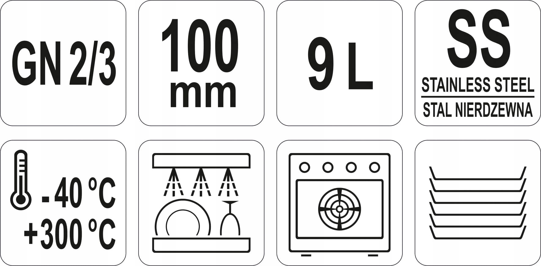 Контейнери GN використовуються для зберігання харчових продуктів в умовах охолодження та заморожування - до -40°C. Вони також ідеально підходять для використання при більш високих температурах - до 300°C. Завдяки цьому їх можна використовувати в пароконвектоматах