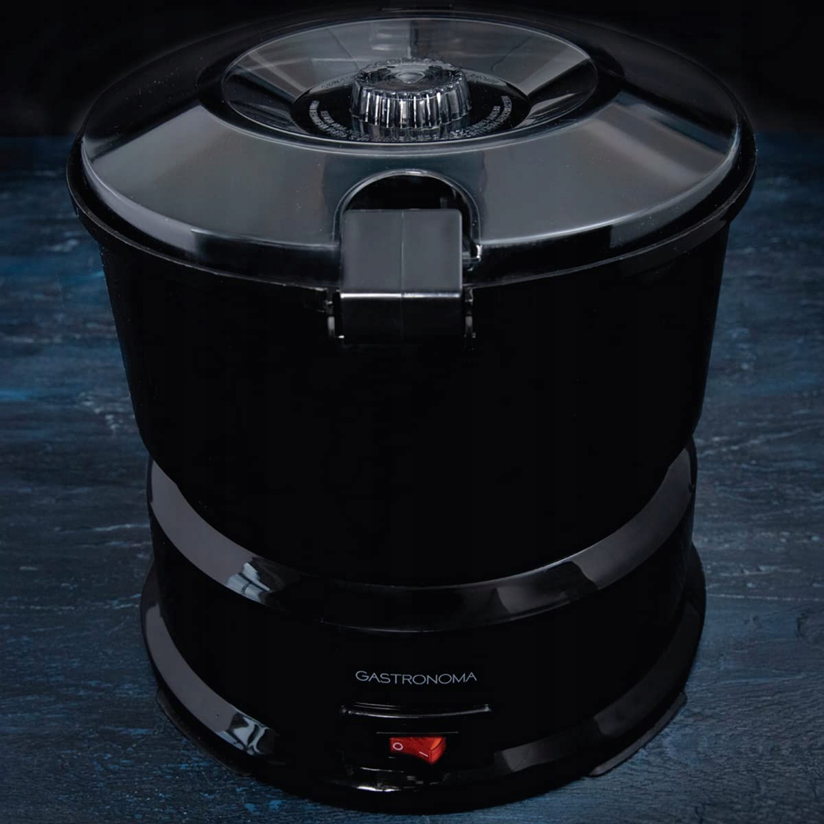 Gastronoma 18220001 — картоплечистка, що працює від змінного струму. Він стоїть сам і виконує процес відлущування протягом 4 хвилин.