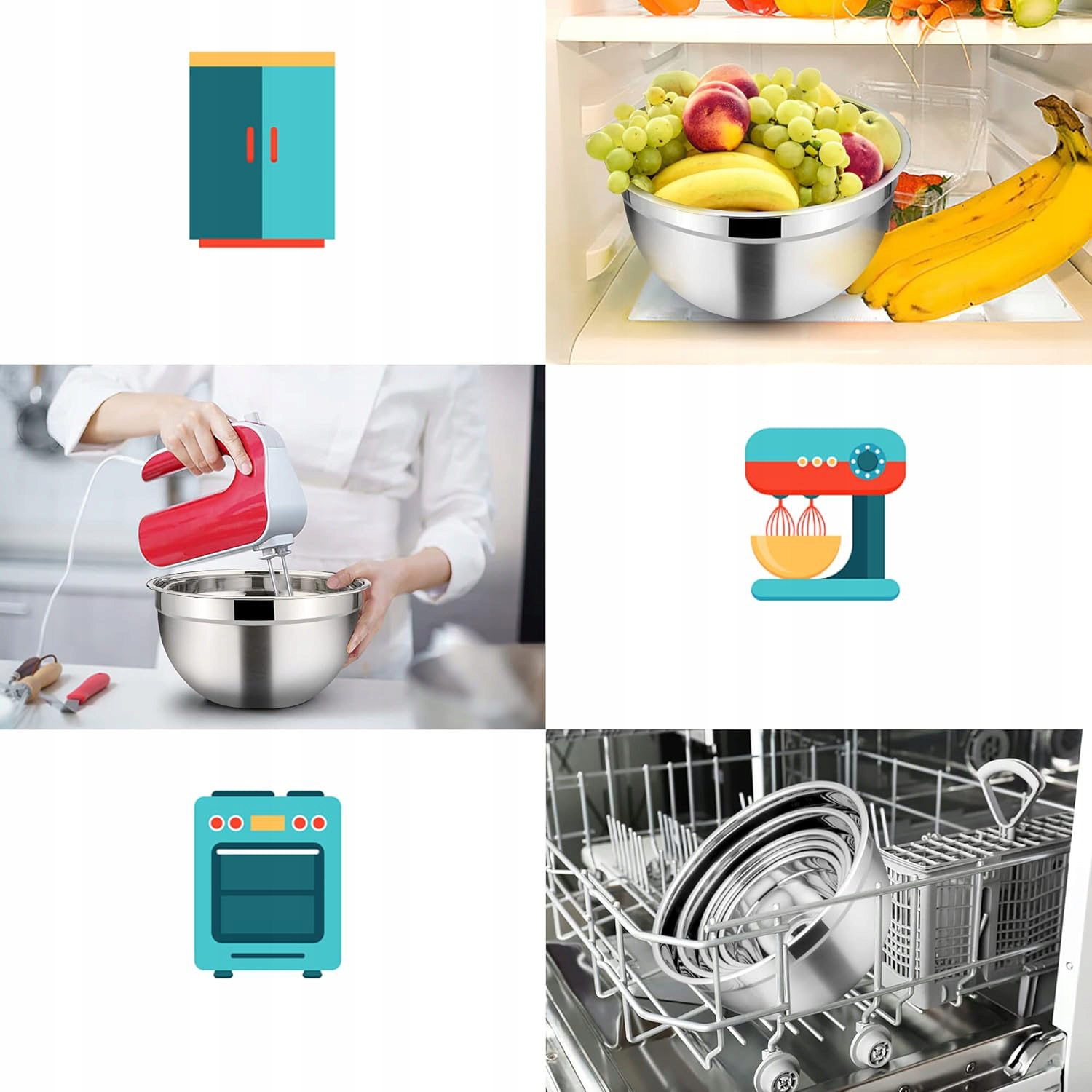 🍜🍜 Ергономічний дизайн:ідеально підходить для зберігання їжі, випічки та приготування їжі. Можна використовувати як миску для самообслуговування страв, напр. рис, макарони, салати, варені овочі тощо. Легко наливати, змішувати, смажити та перемішувати.